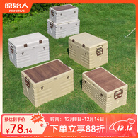 原始人户外露营折叠箱收纳储物置物箱子整理野营用品便携式折叠桌 双层款米白60L【双盖板设计】