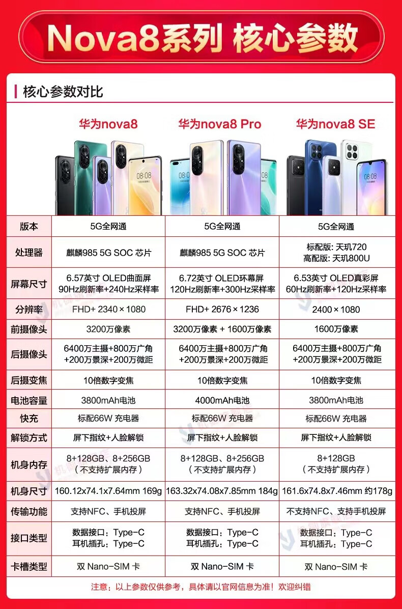 华为nova 8 Pro 5G 全网通 麒麟985芯片nova8手机 普罗旺斯 中国大陆版 nova8(曲面屏)8+128G