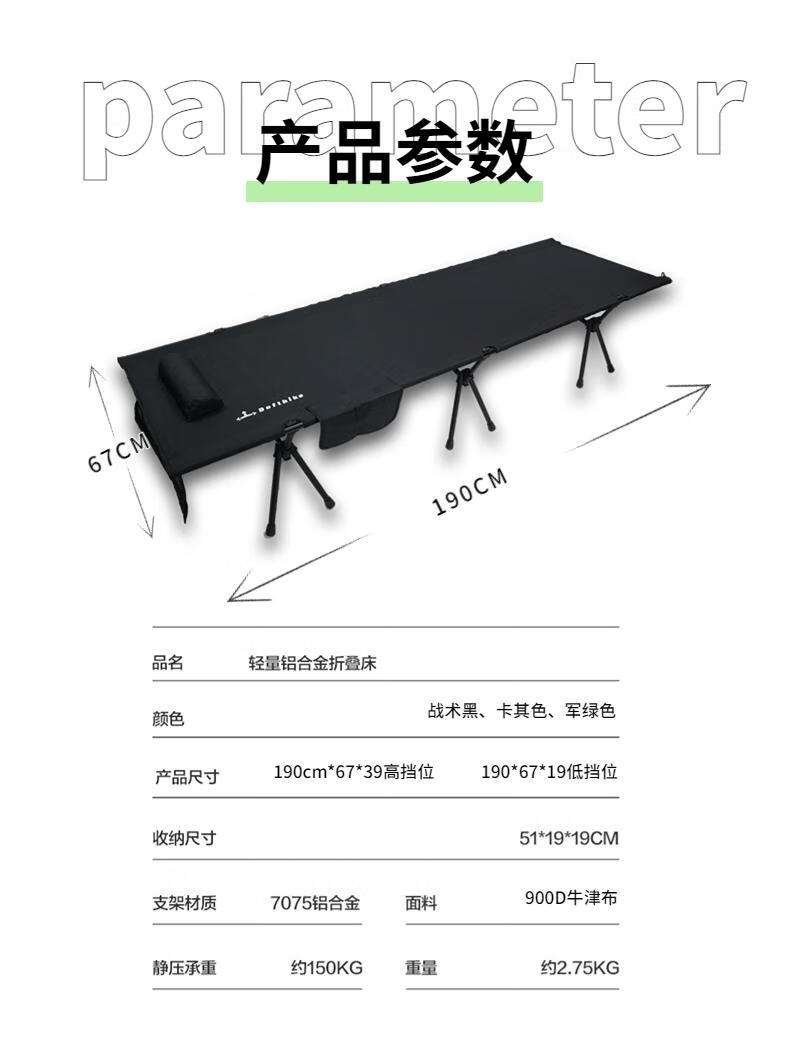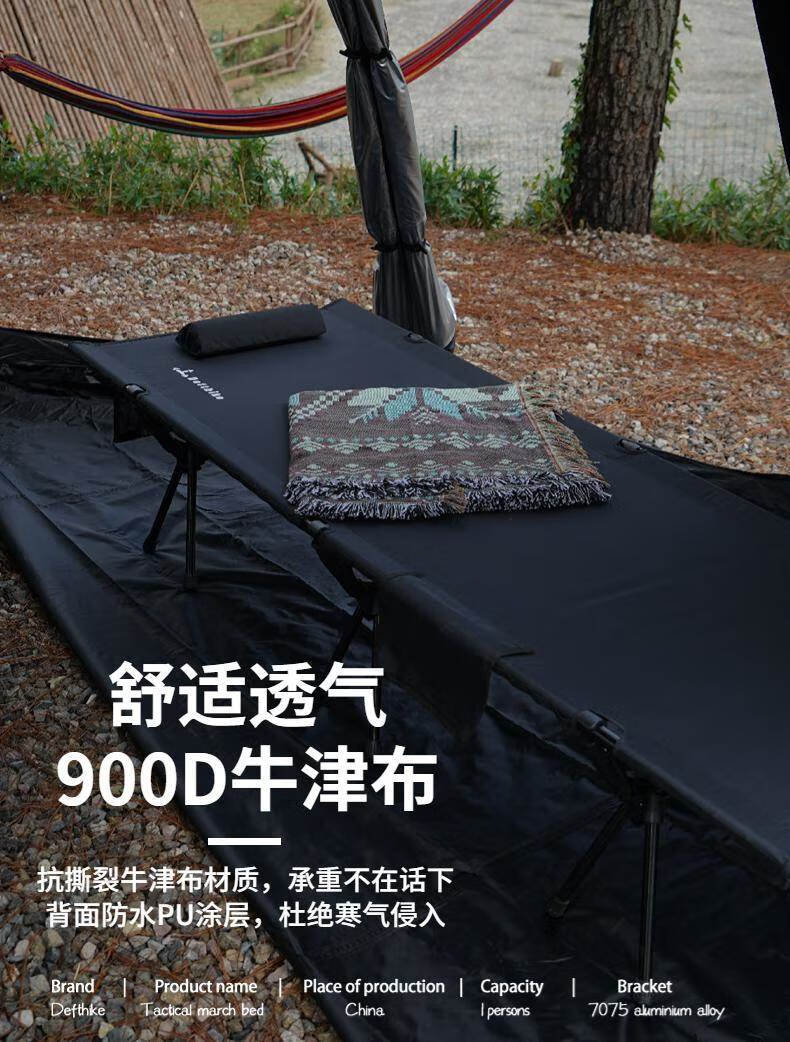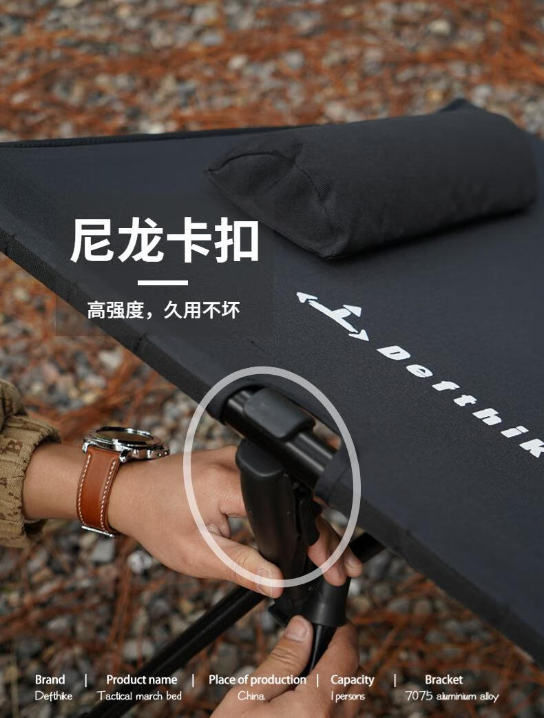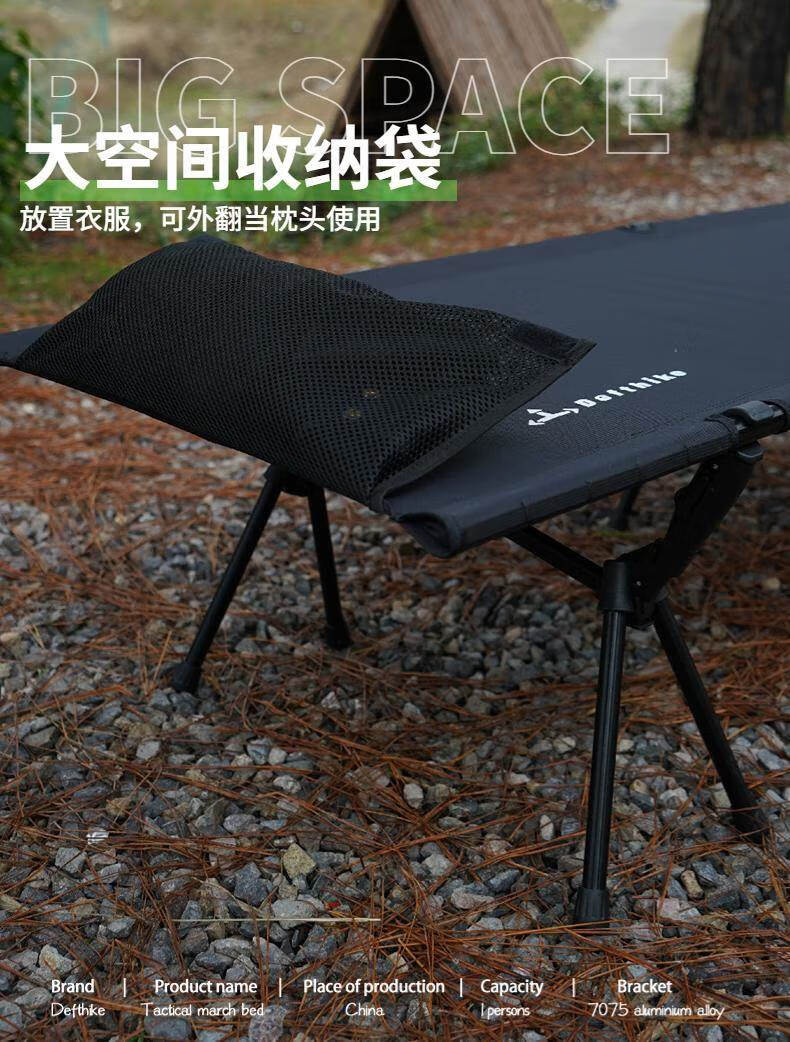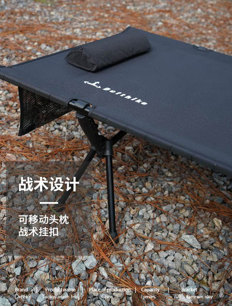 迪飞客露营战术行军床户外单人折叠超轻单兵便携轻量化办公室午休承重大 军绿色【配枕头 送收纳袋】