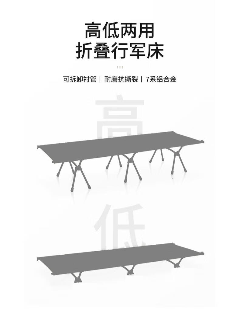 户外便携轻便携户外便携野外露营铝合金单人午休折叠床 卡其色【高低两用款】