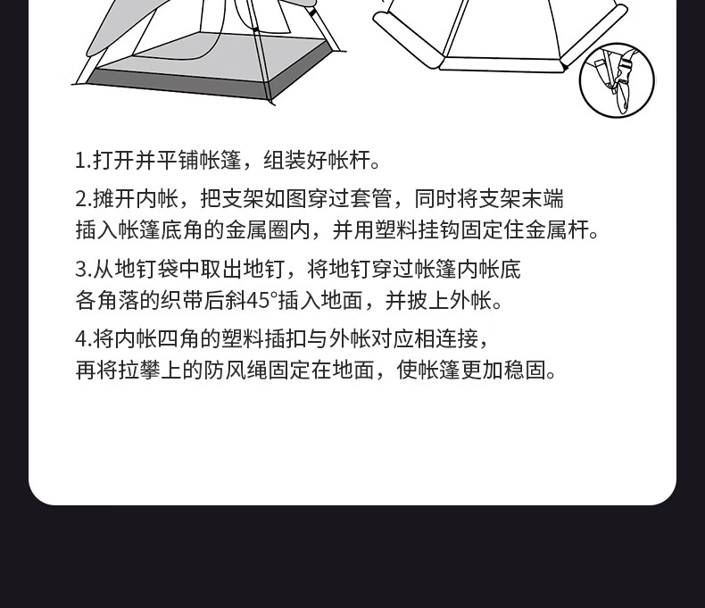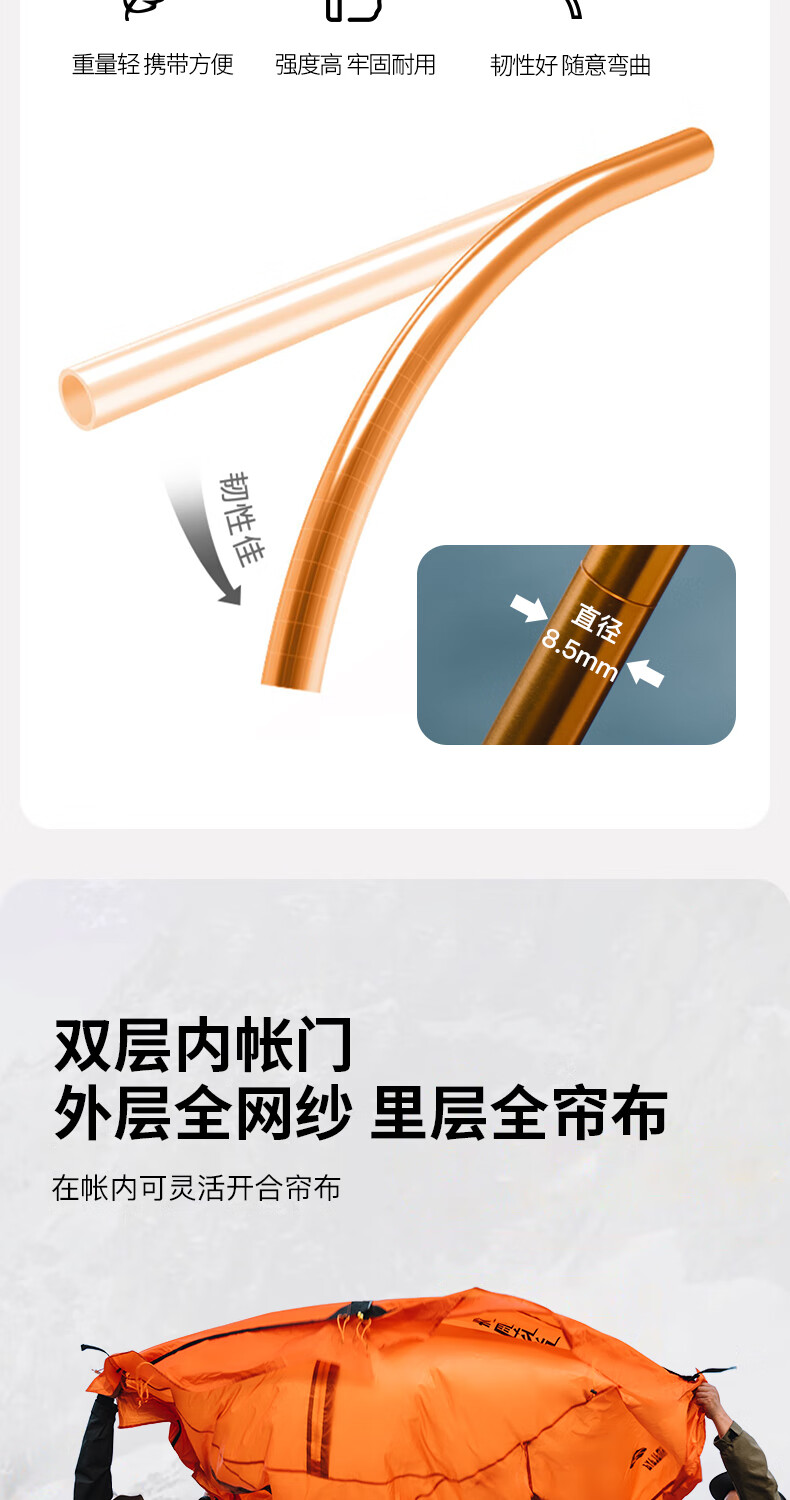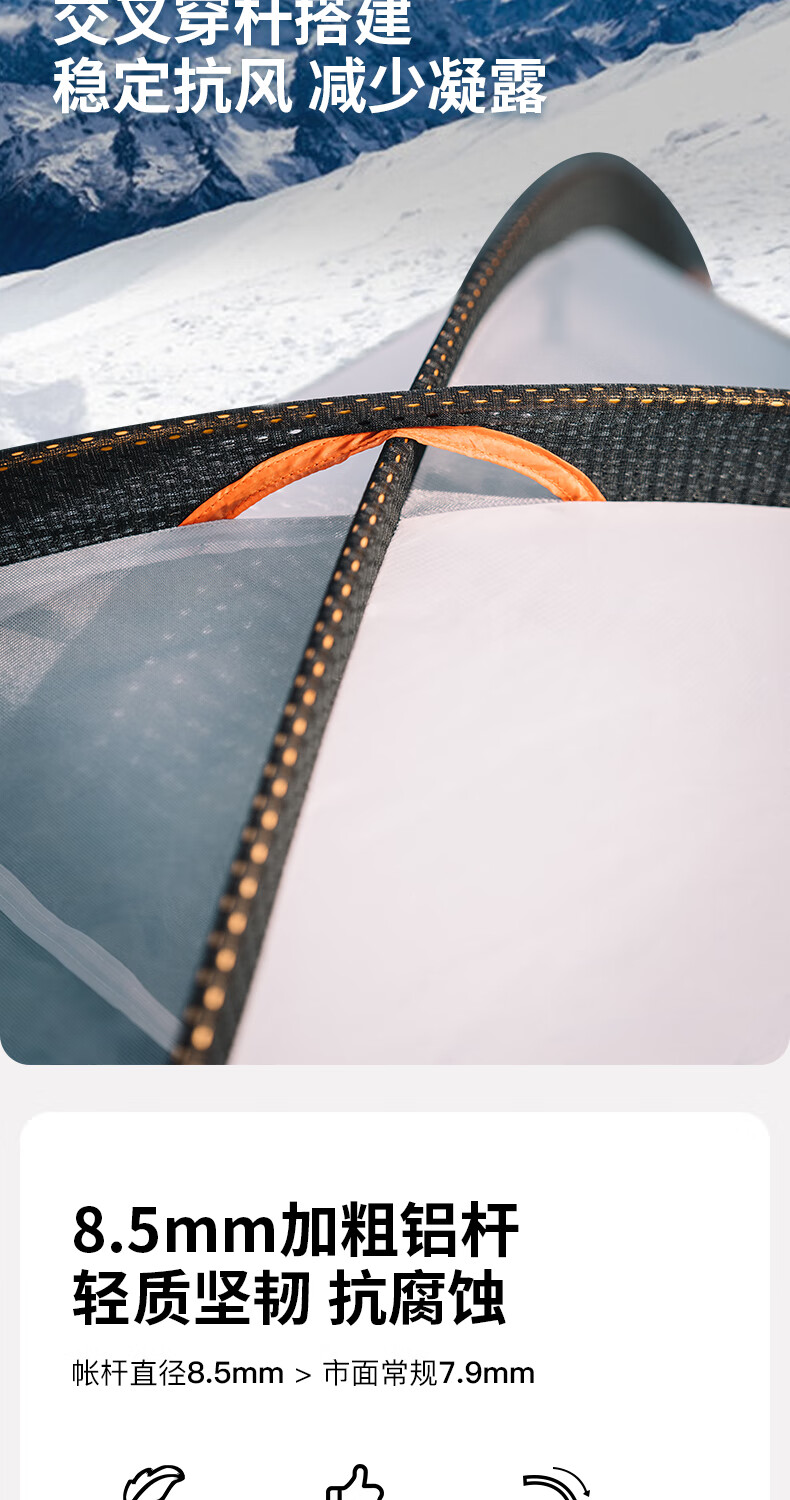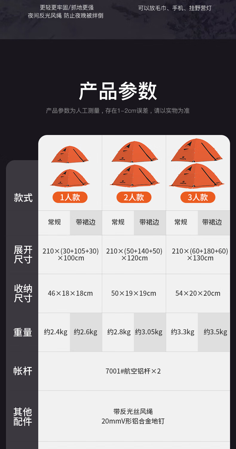 户外帐篷追求的是轻量便携,入手这款帐篷主要是看中了不到3公斤的重量以及收纳后的小体积,非常便于携带及搭建。
