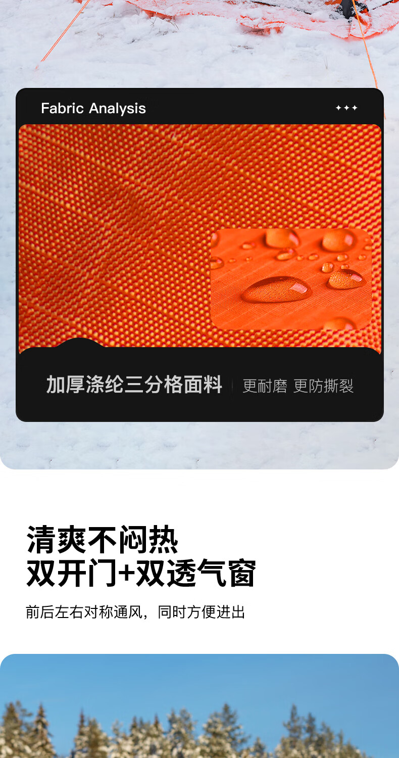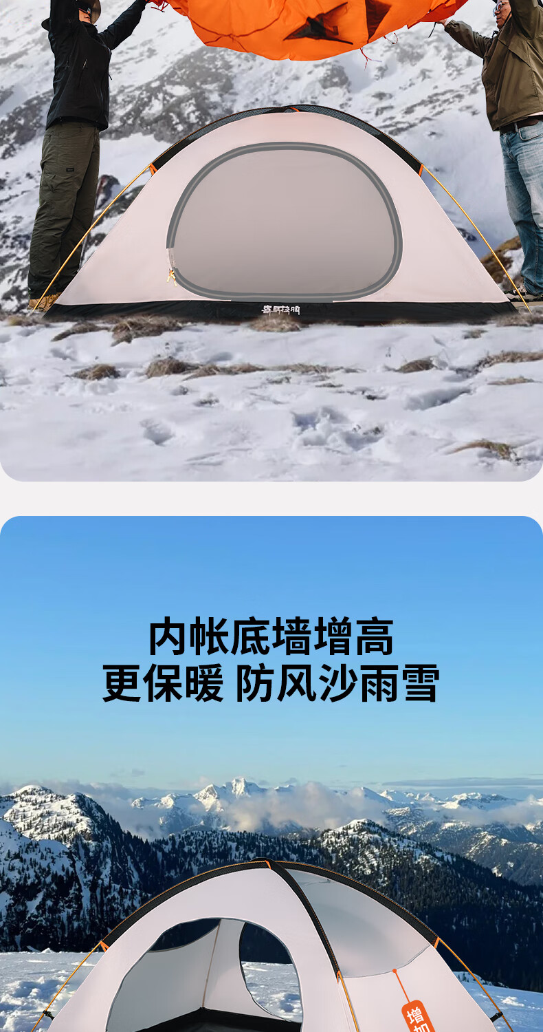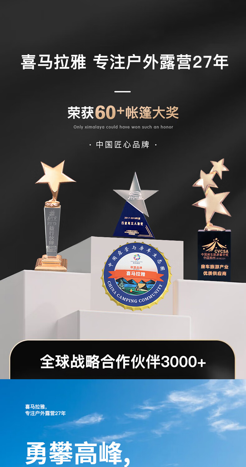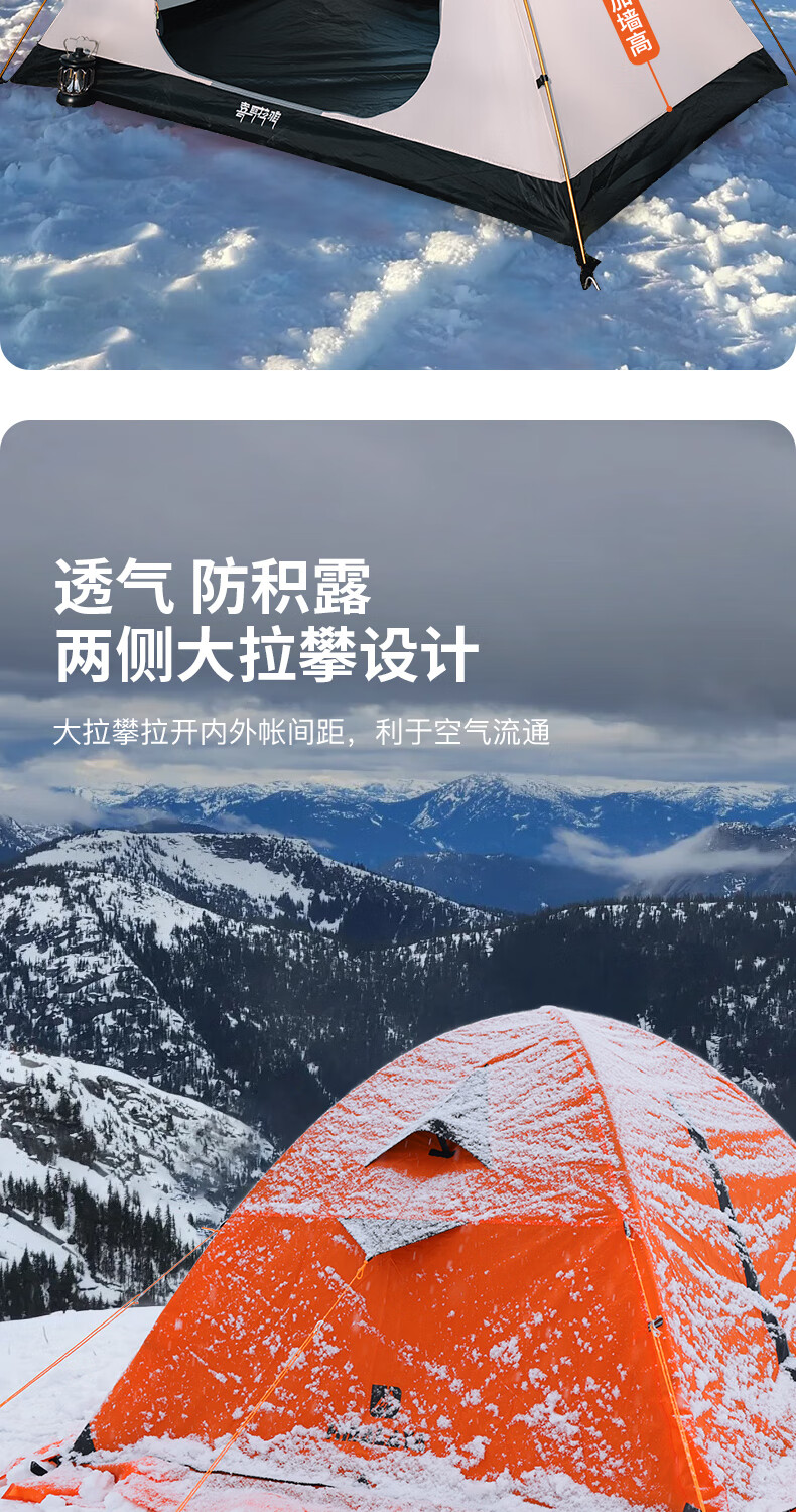 喜玛拉雅登山帐蓬采用210D牛津布制做,防水效果很好,不俱风雪。透气效果很好可容纳两到三人。易收纳便于携带,适用多种场景。