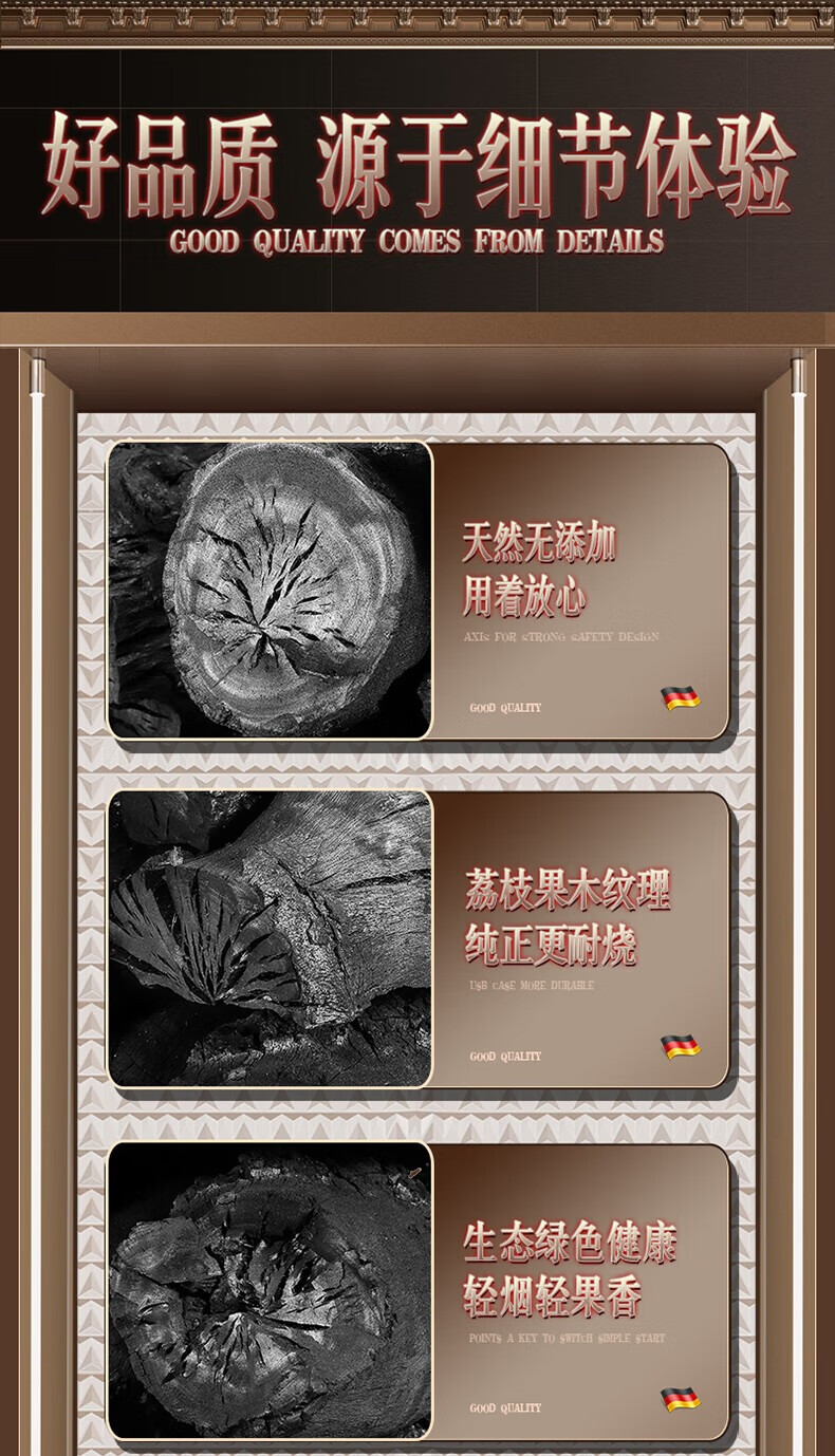 这款烧烤碳不错,太棒了,易燃耐烧,打火机一点就着,燃烧持久,烤完整场聚会都不用频繁添碳。无烟无味,烤出的食物没有怪味,灰烬少,清洁超省心,无限回购!