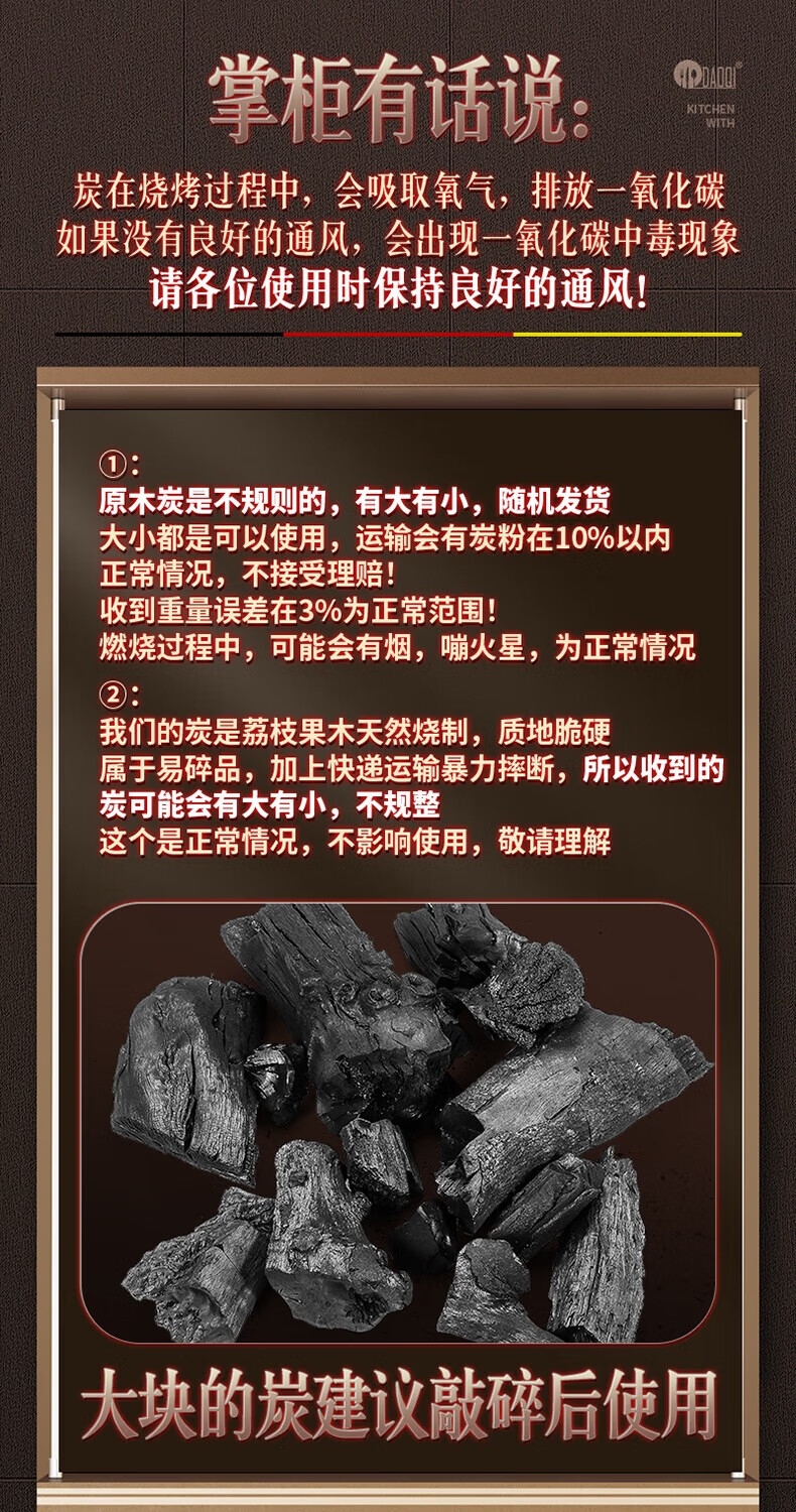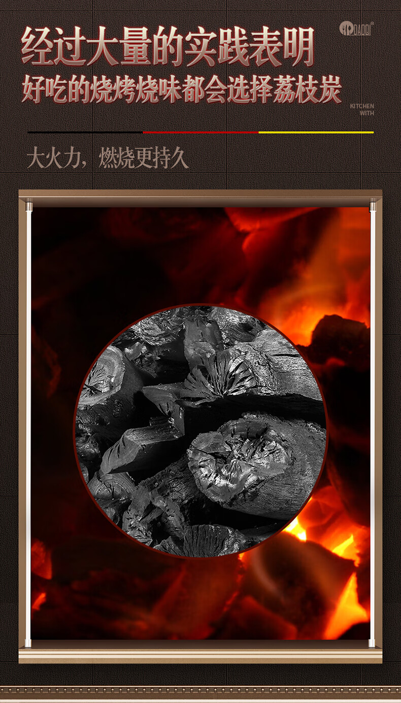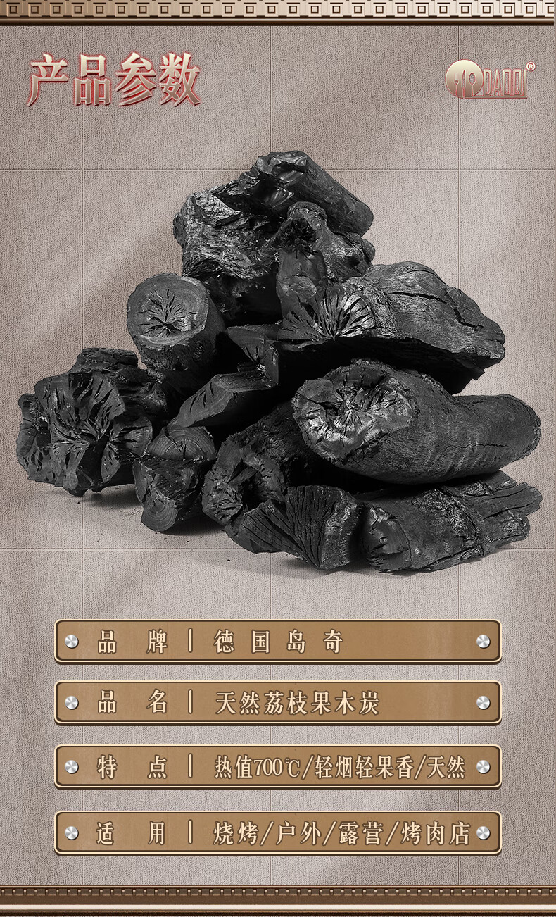岛奇(Daoqi)荔枝炭果木炭无烟室内户外果香耐烧围炉煮茶烧烤正宗原木炭 【3斤】荔枝炭 赠酒精块和手套