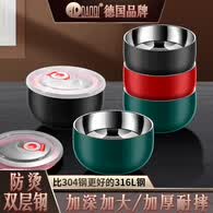 岛奇(Daoqi)食品级316不锈钢碗儿童吃饭碗双层隔热防烫汤碗小碗铁碗家用 粉色 12cm(无盖)