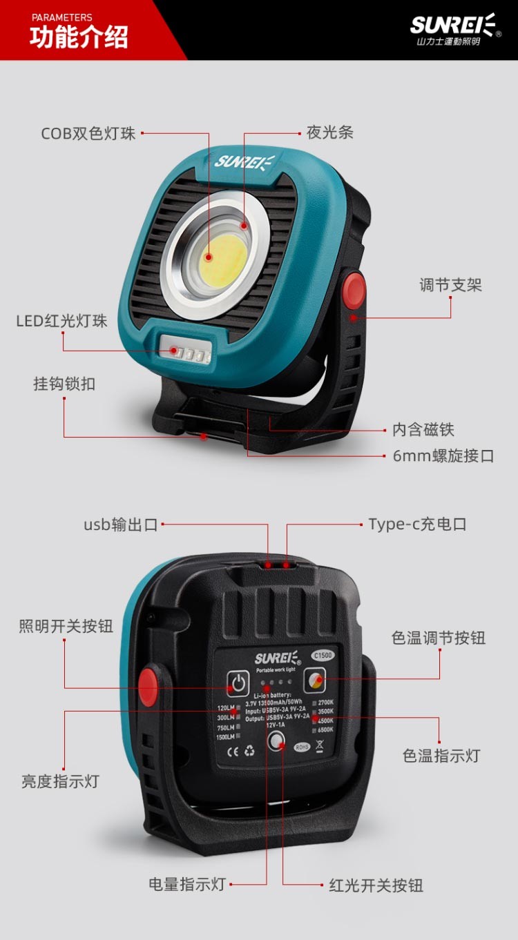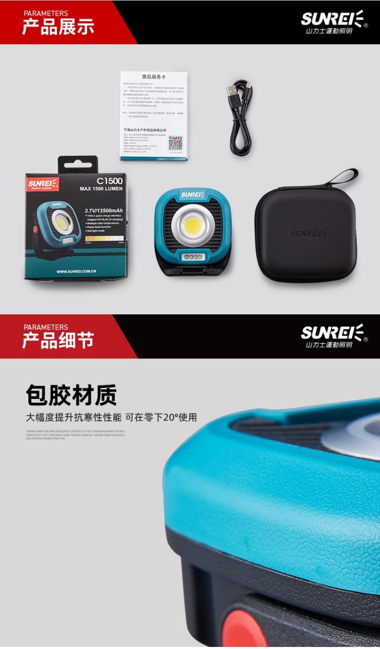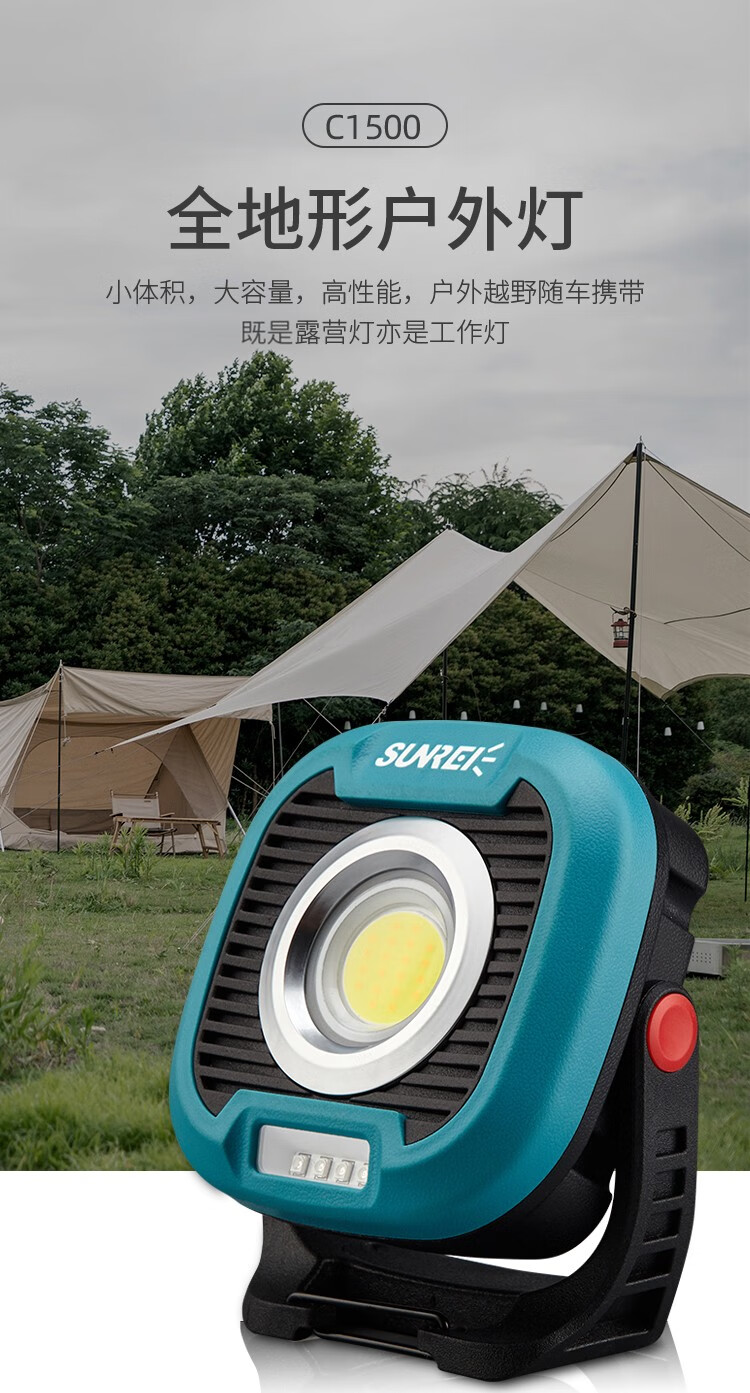 山力士C1500户外照明灯便携式野营灯露营灯营地灯led工作灯汽修充电磁吸 【极致灰-全地形户外灯C1500】