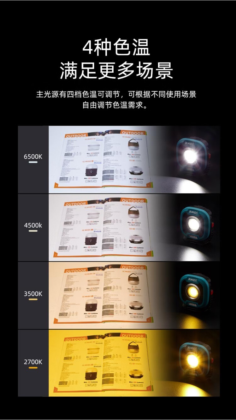 这个户外灯真不错,电量持久,而且还可以给手机充电,灯的做工很好,亮度非常不错,可以调节色温和亮度,最棒的是还可以用磁吸固定到铁质物体上面,非常方便