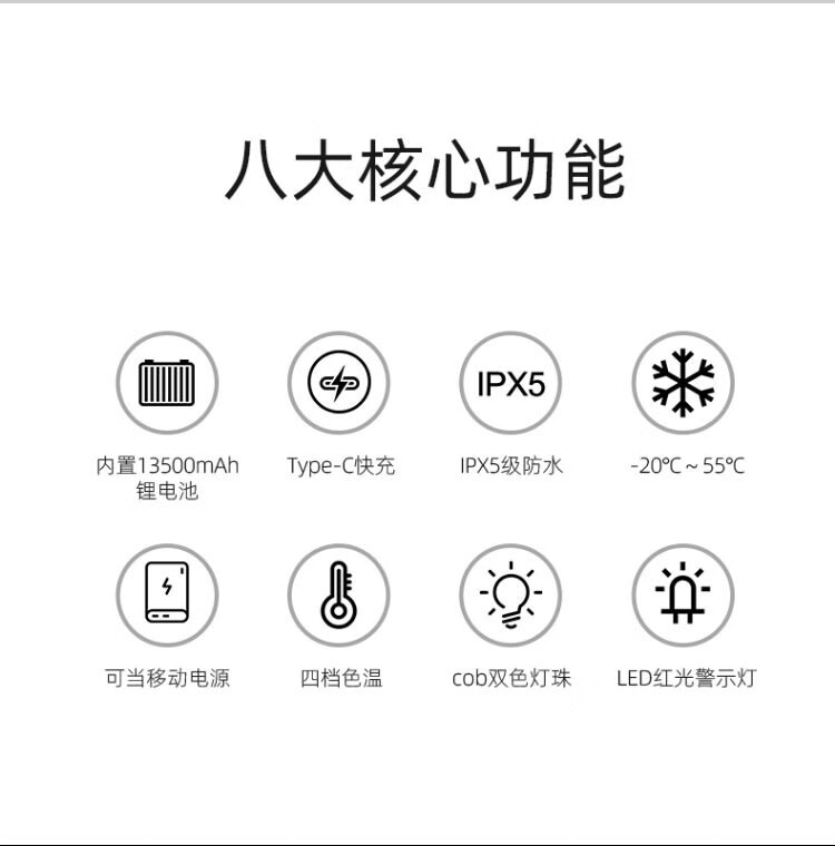 用料扎实、很有质感,光的强弱和色温都有档位调节,红色警示灯很有用,还是个充电宝,确实挺不错的。美中不足灯珠条纹是歪的、晃动的话灯壳内有小东西滚动碰撞的异响,不清楚我这个是个例中奖了还是普遍存在,虽然目前不影响使用,总感觉美中不足。