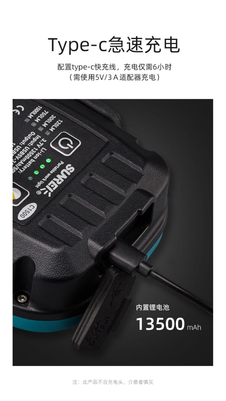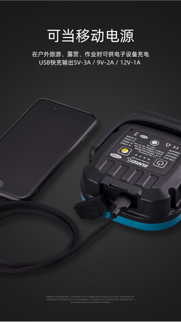 网上看了很多测评,买了这款网红款的高功率工作灯。拿到手后做工精细,很扎实。试用了一下最高量度真的相当可以,还可以作为充电宝反向充电使用