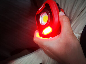 这个灯拿到手后,研究了一下,感觉太牛了。外形小巧精致,红色非常漂亮。拿到手上很有手感,塑胶是那种耐摔型的,没有异味。灯光四级亮度可调,这点非常值得推荐;下面的红色灯支持常亮和爆闪也是野外应用非常好的;再来夸奖一下它的充电功能,非常赞的充电宝,支持USB和TYPE-C,而且USB还是快充,我华为手机直接使用自带USB线迅速快充!TYPE-C接口也是现在主流手机接口了,就不用愁少带线什么了,大赞。 还有配套的灯支架,满满满意!强烈推荐的一款产品!