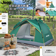 JEEP帐篷户外折叠便携式自动防雨防晒防潮加厚野营过夜露营装备用品 速开加厚涂银双层两门帐篷+防潮垫/荷叶绿