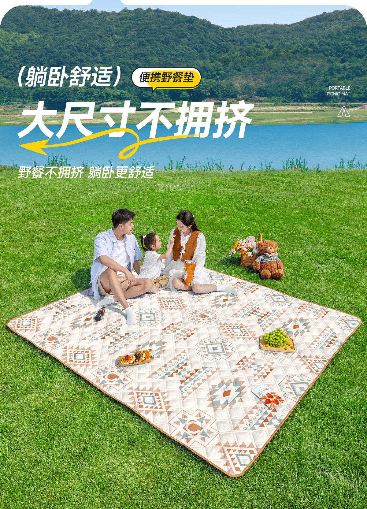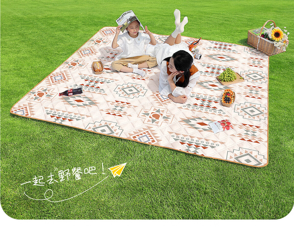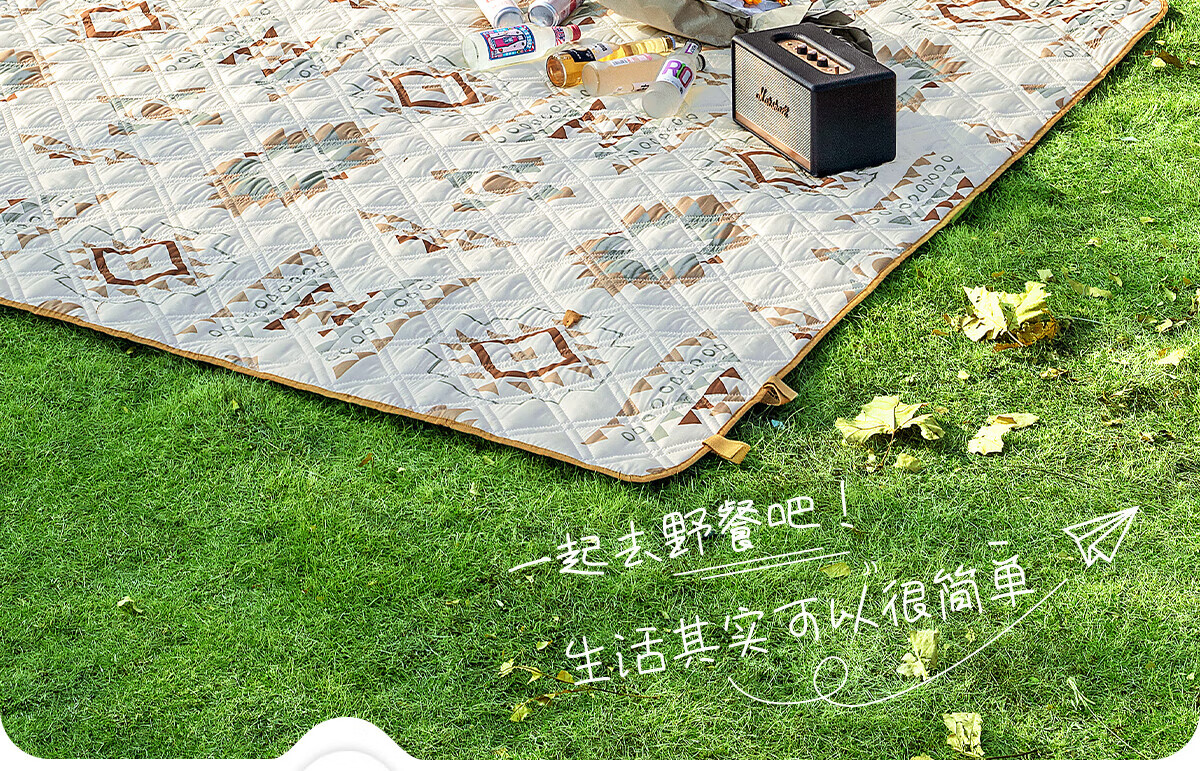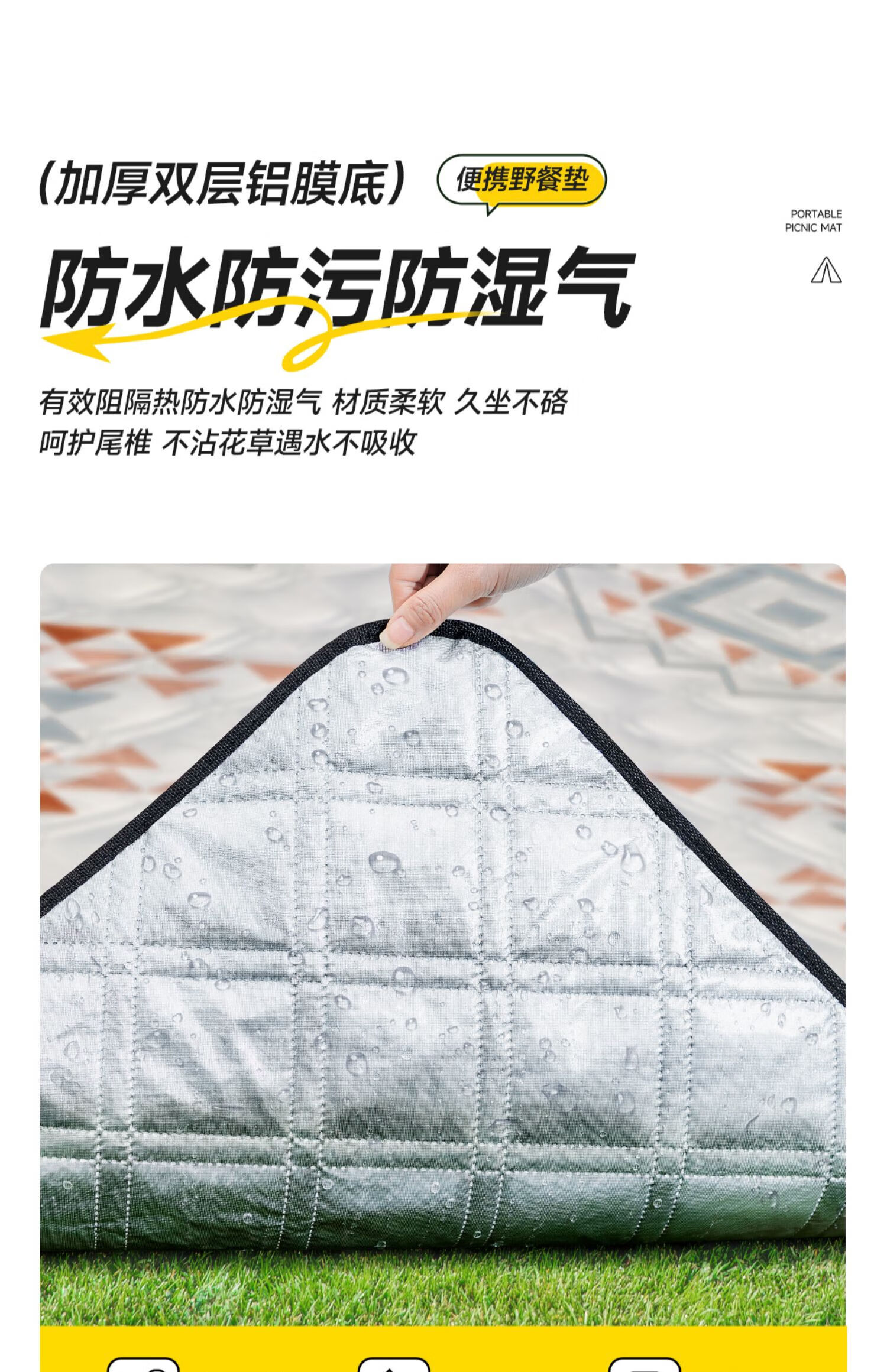 山头林村超声波野餐垫防潮垫户外露营郊游爬垫铝膜底加厚沙滩垫可机洗地垫 5*2m