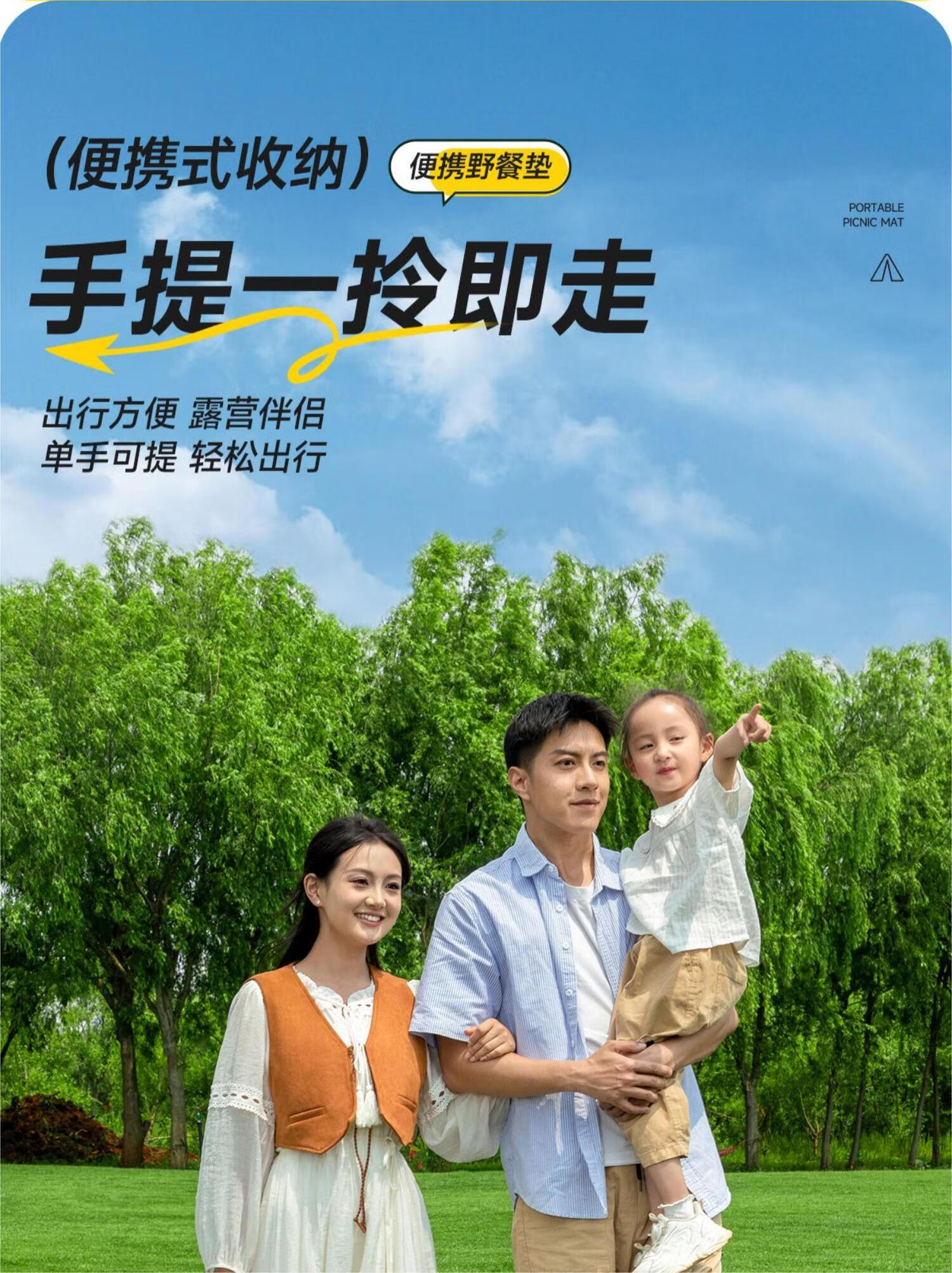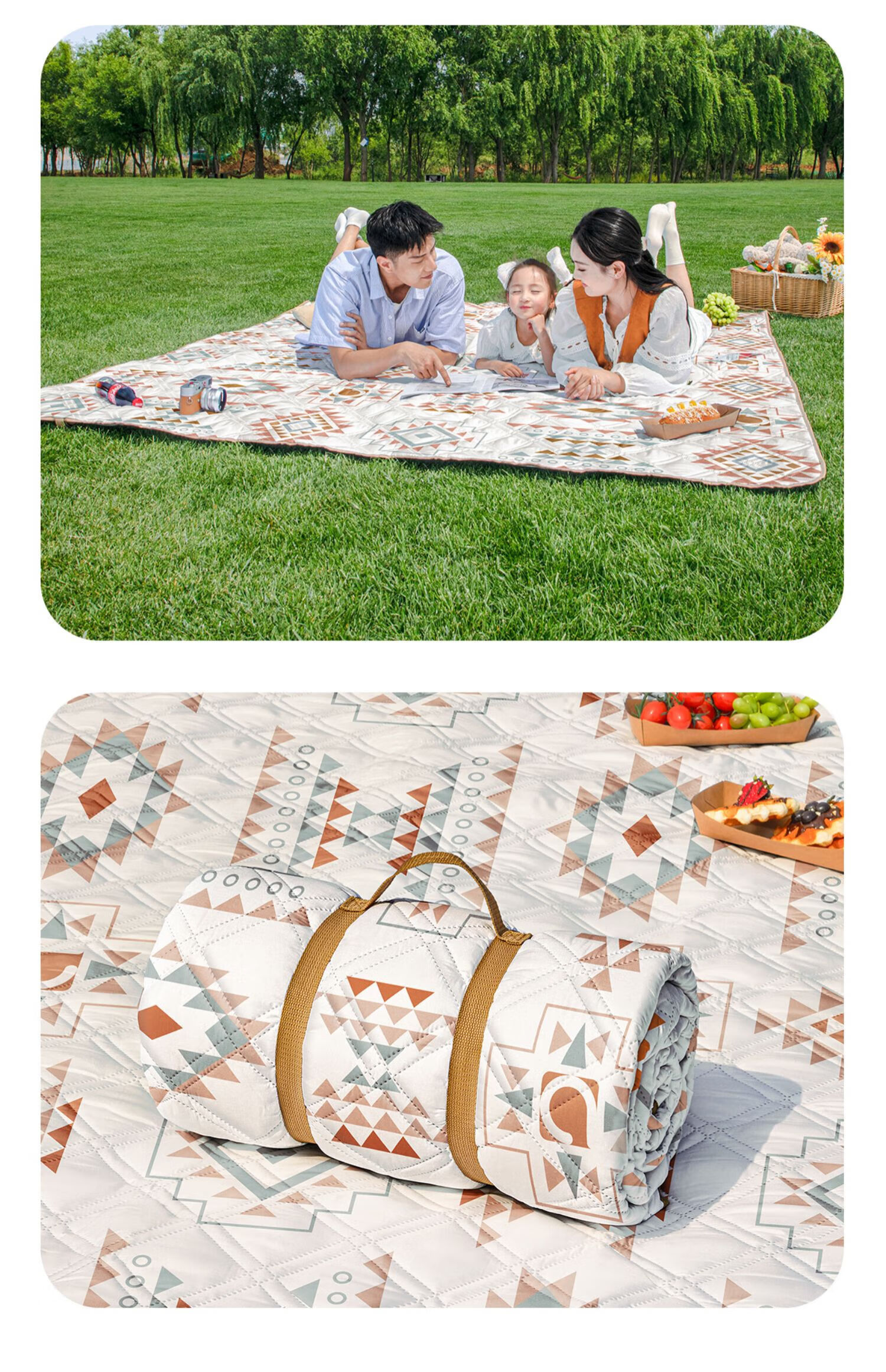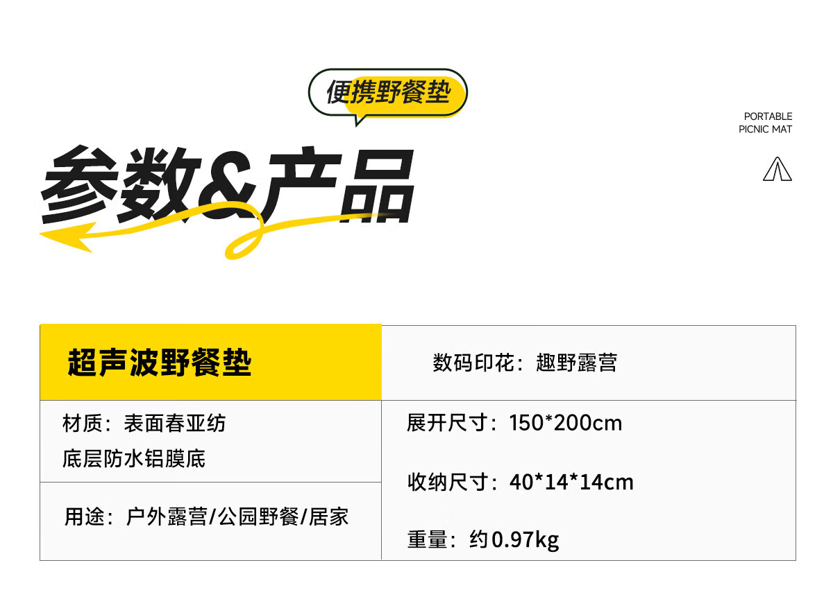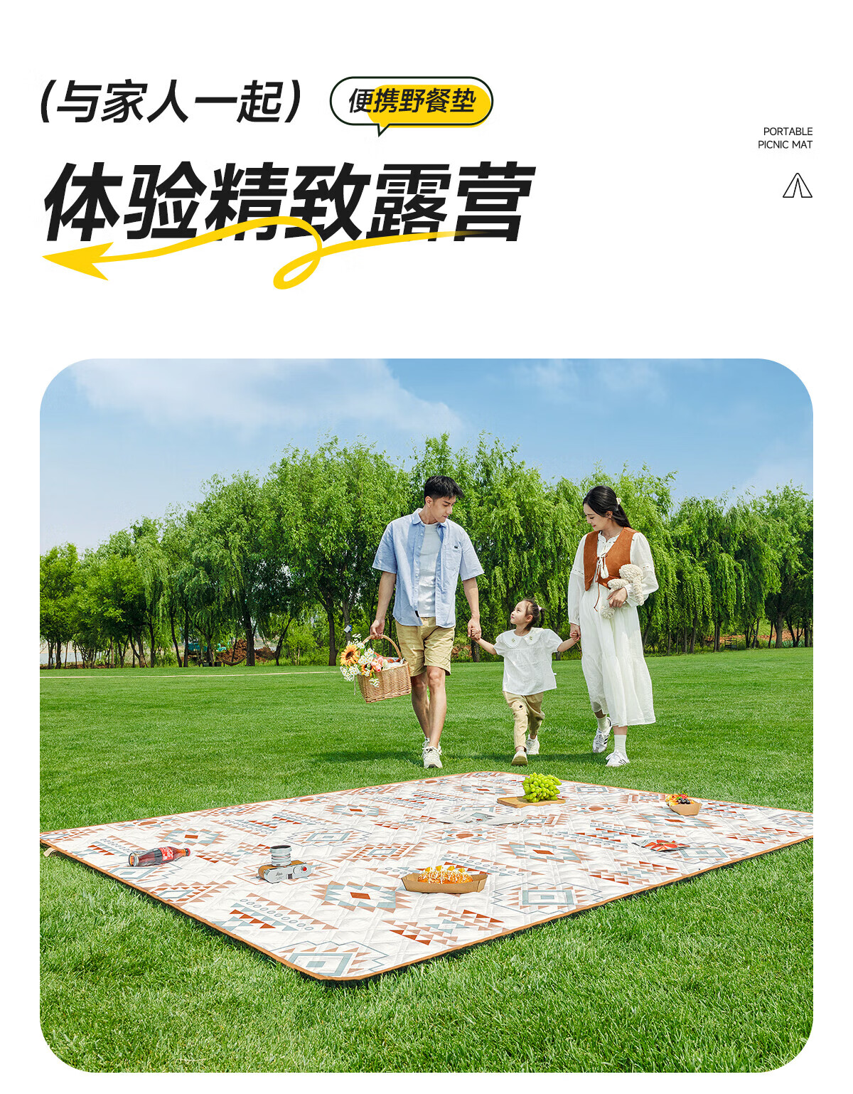 山头林村超声波野餐垫防潮垫户外露营郊游爬垫铝膜底加厚沙滩垫可机洗地垫 5*2m