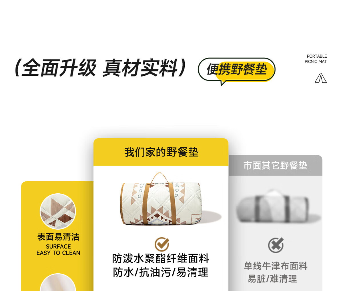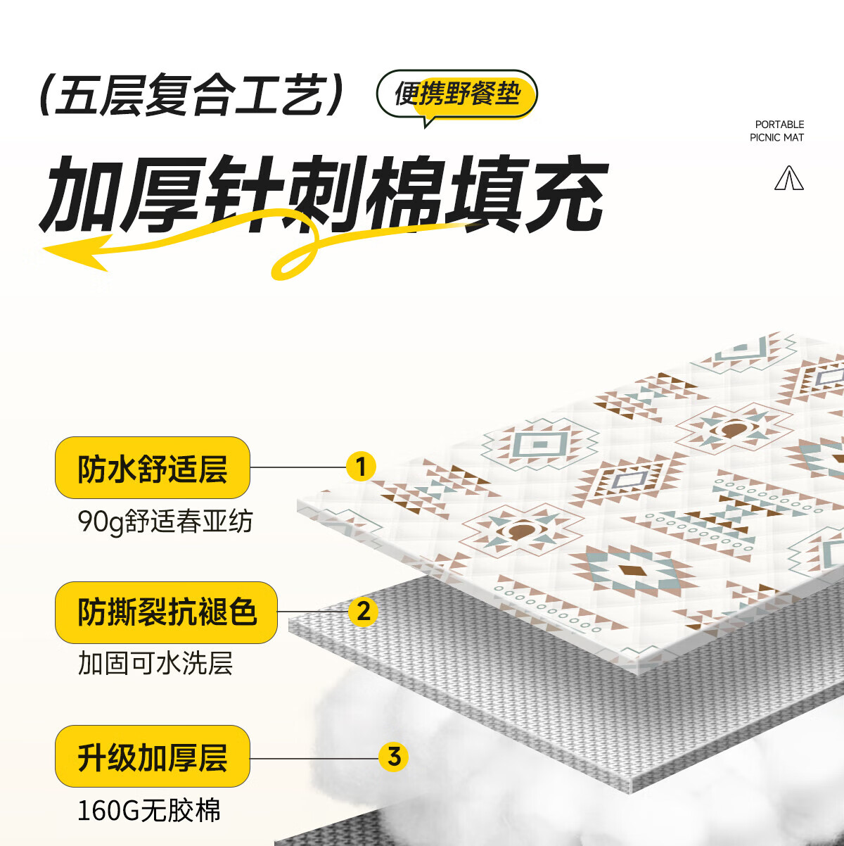 OUZEY超声波野餐垫防潮垫户外露营郊游爬垫铝膜底加厚沙滩垫可机洗地垫 超声波野餐垫【暖沙色(1.5*2m】