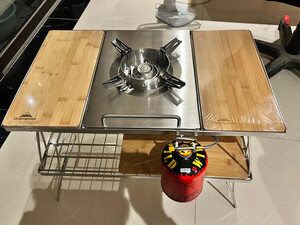 茶桌很不错,尤其自带的包包比网格桌的包包好很多,茶桌单桌放网格桌上正好,买的单桌茶桌,一单元IGT的位置买啥单元板还在纠结中,蝴蝶炉和火枫擎天2已到位,活着独立的一单元炉具再研究研究。