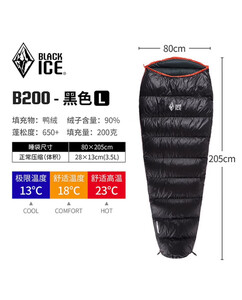 黑冰(BLACKICE)B系列鸭绒木乃伊式羽绒睡袋露营羽绒睡袋B200(新标准)/橘色/L