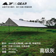 三峰出户外天幕15D超轻超大天幕 防雨水涂银防晒紫外线多用途天幕布 15D天幕无杆款 涂银灰白 3米*4米