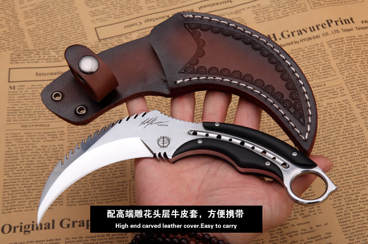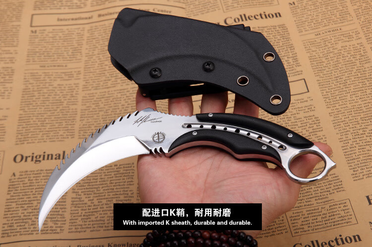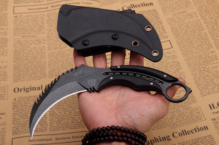 源头厂家现货热卖托德魔爪锋利耐用战狼爪刀户外野营身求生爪刀 黑色+K鞘 D2.