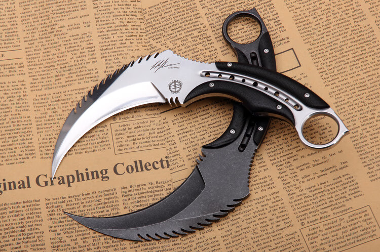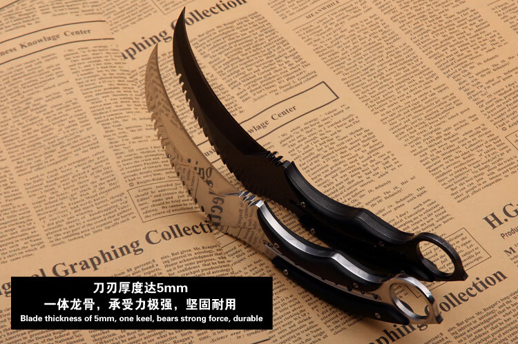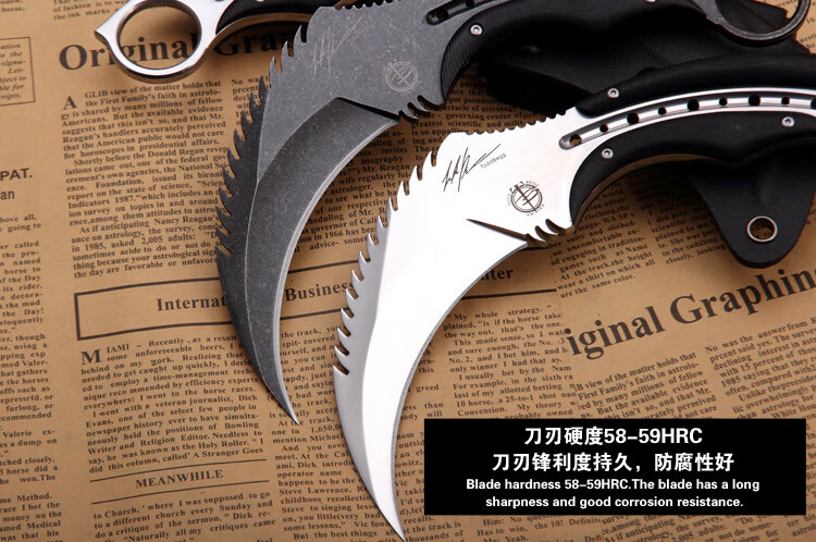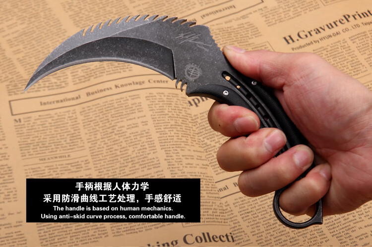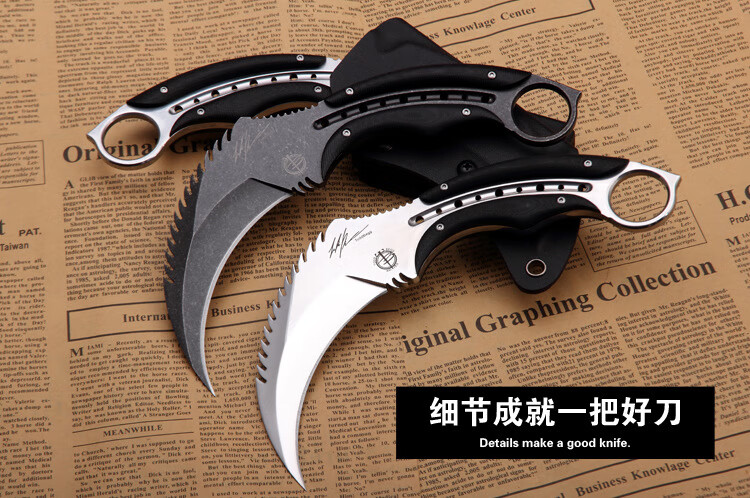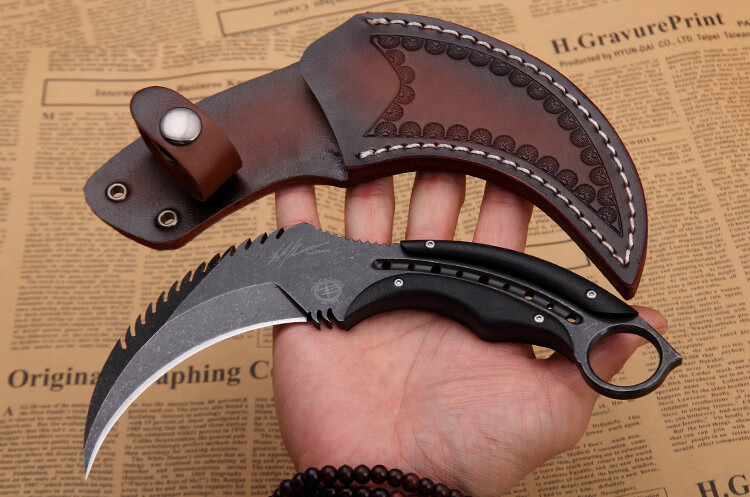 挺进者karambit户外战术双刃爪刀高硬度D2钢爪子刀野外便携防身生存刀具 大捷龙爪刀【钛黑色】 18cm-大于60°【赠战术K鞘】