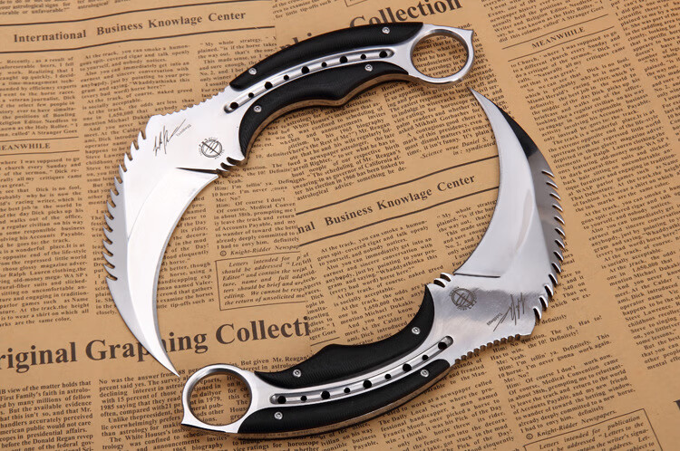 狼瑔户外战术格斗双刃爪刀冷兵器蝎子弯刀钢刀高硬度防身爪子刀具 狼瑔-刺客双刃爪【赠真皮刀套】 23cm-60°以上