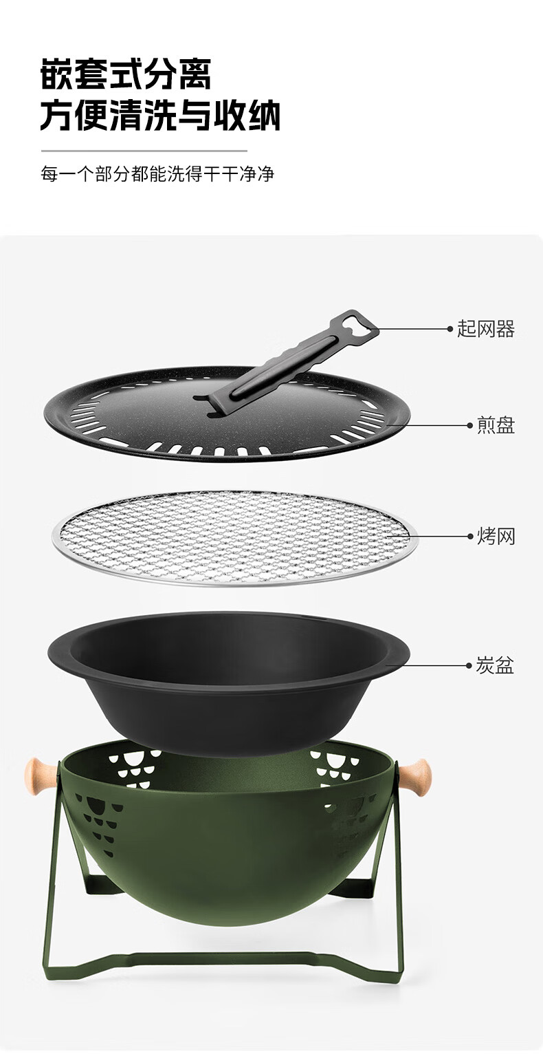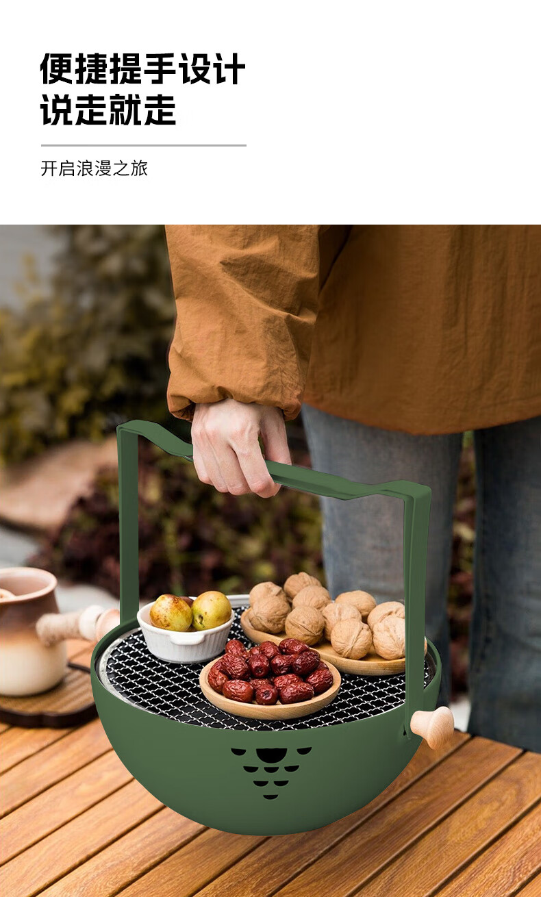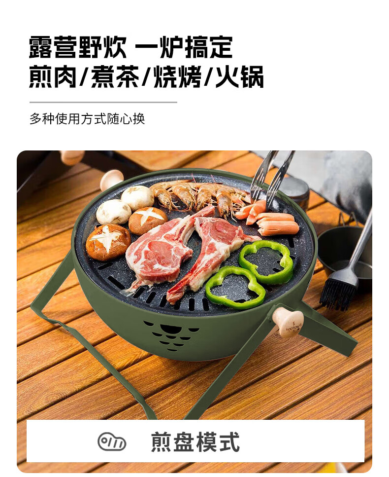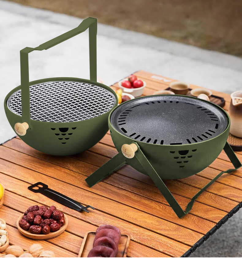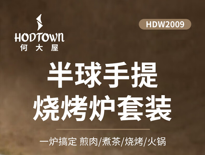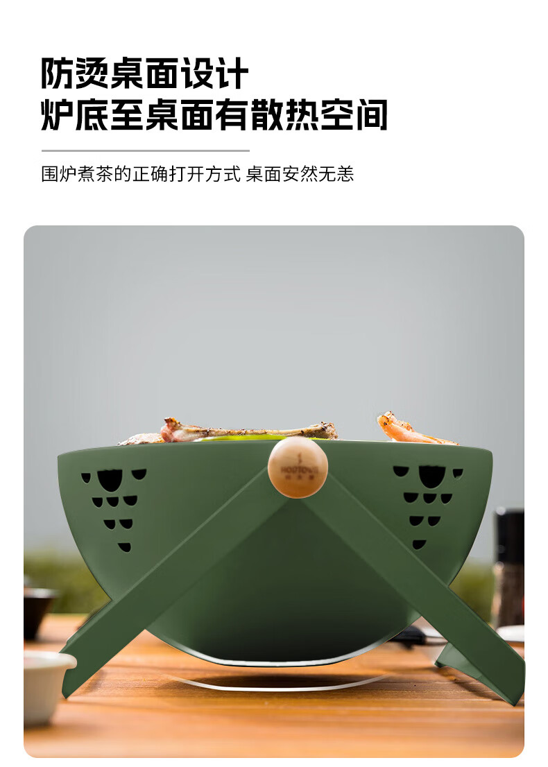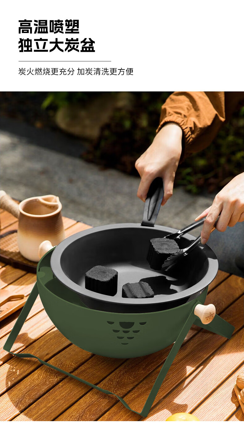 何大屋(Hodtown)围炉煮茶 无烟煎烤盘 碳烤炉 烧烤炉 可折叠便携炉 送竹炭3斤套装 半球手提烧烤炉套装 HDW2009