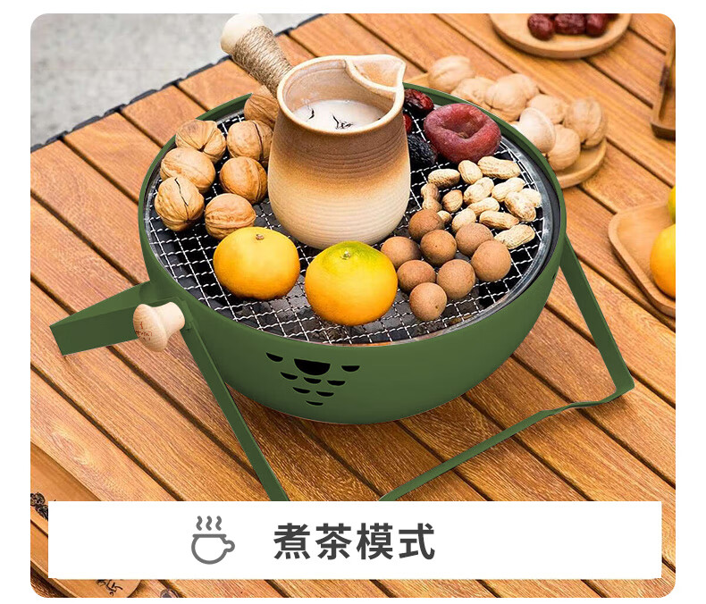 骆驼(CAMEL)JEANS围炉煮茶炉全套烤火炉火盆烧烤架桌户外炭炉家用室内 【喜喜】木纹色围炉桌_稳固加粗