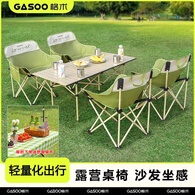 格术户外折叠椅月亮椅露营椅马扎折叠凳沙滩椅便携式桌椅露营装备全套 推荐套装-95长桌+4把奶绿色月亮椅