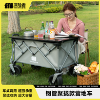 探险者露营车户外露营推车聚拢型露营车大号特大号带桌野餐车营地拖车 160L 桌板套餐:经典曜黑+桌板