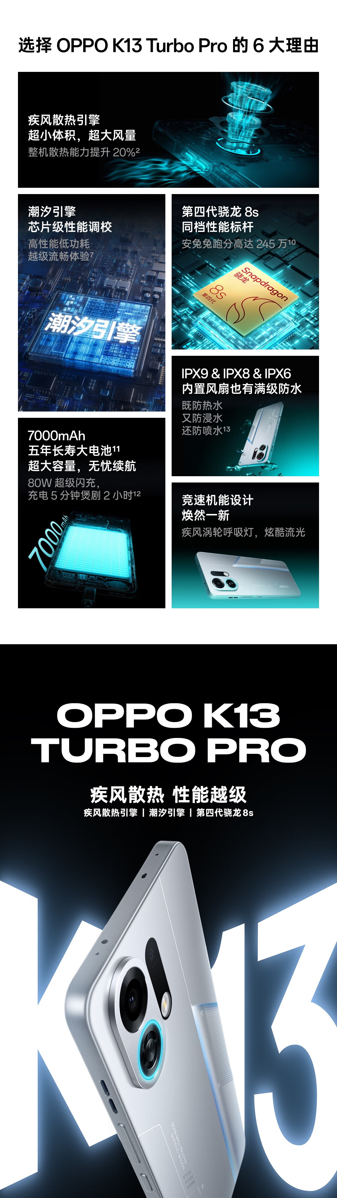 OPPO K13 Turbo Pro【国家补贴】 疾风散热 性能越级 潮汐引擎 第四代骁龙 8s 新款5G手机 黑武士 16GB+512GB