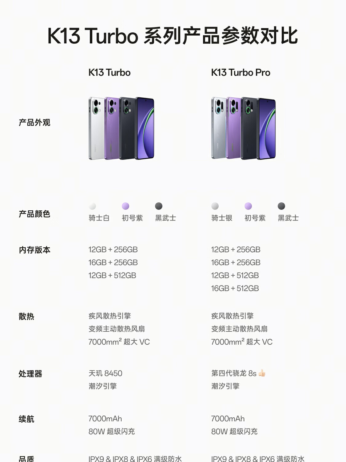 OPPO【国家补贴15%】oppo K13 Turbo Pro 5G手机 疾风散热引擎 第四代骁龙8s 7000mAh大电池 满级防水 初号紫 16GB+512GB
