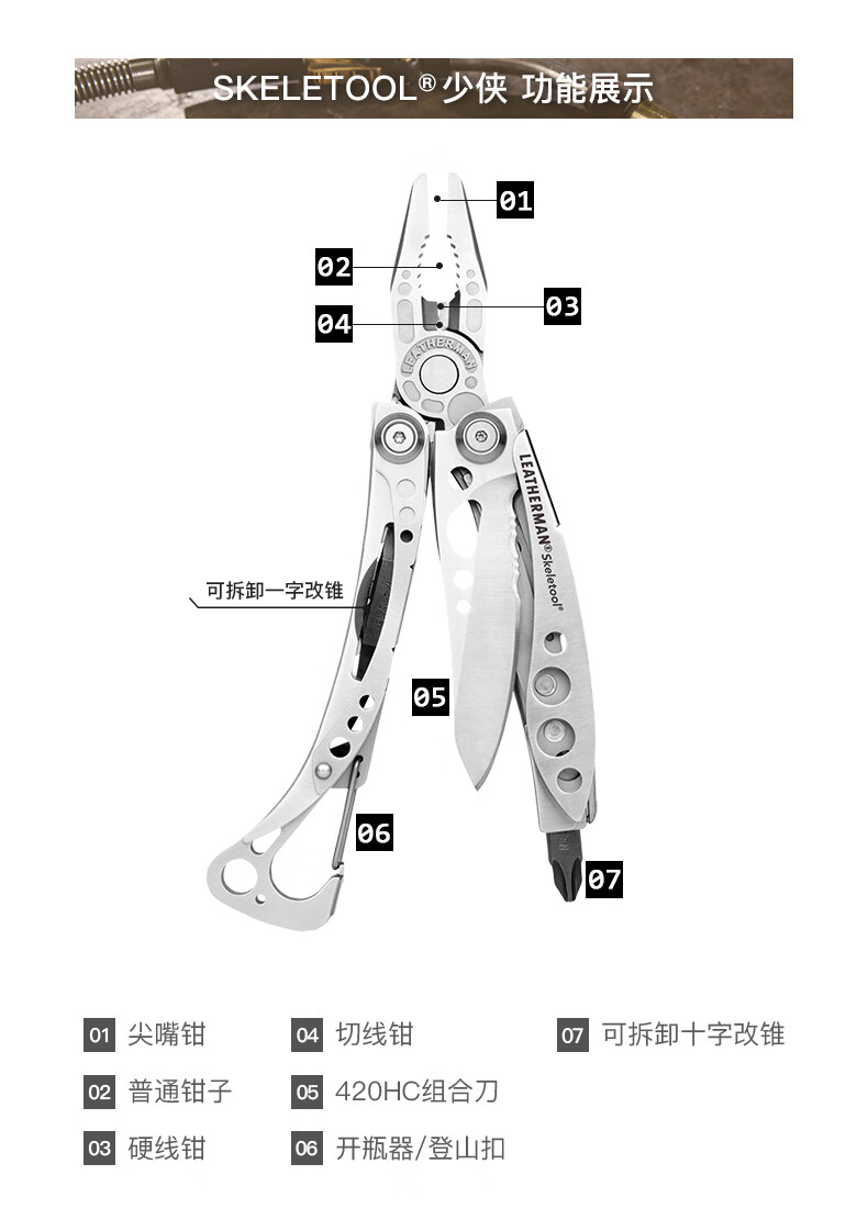 莱特曼莱泽曼少侠多功能工具钳 SKELETOOL组合钳子户外露营徒步EDC装备 湖绿橙