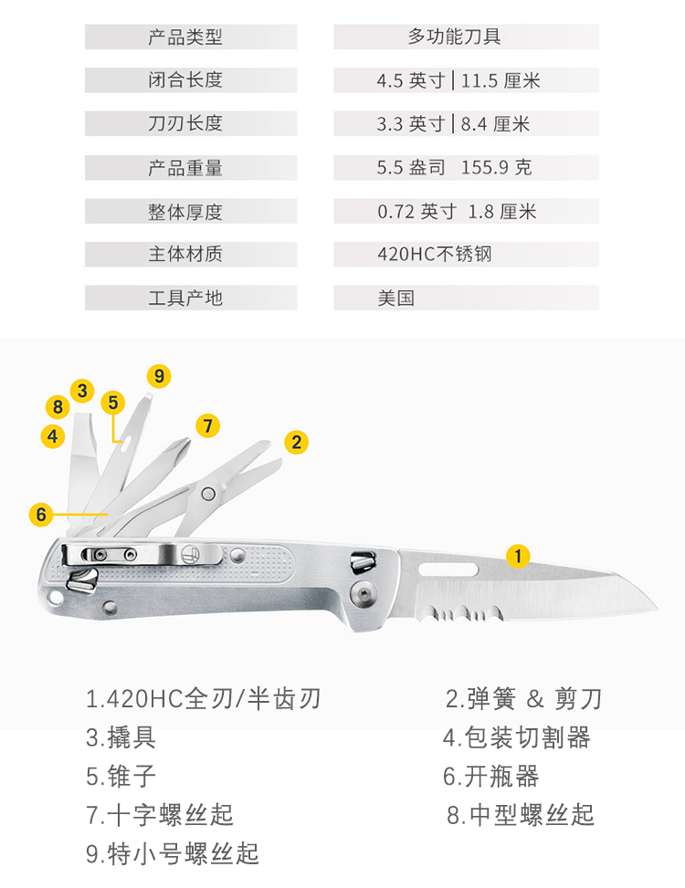 莱特曼莱特曼FREE K4系列户外便携小刀多功能组合工具 k4X