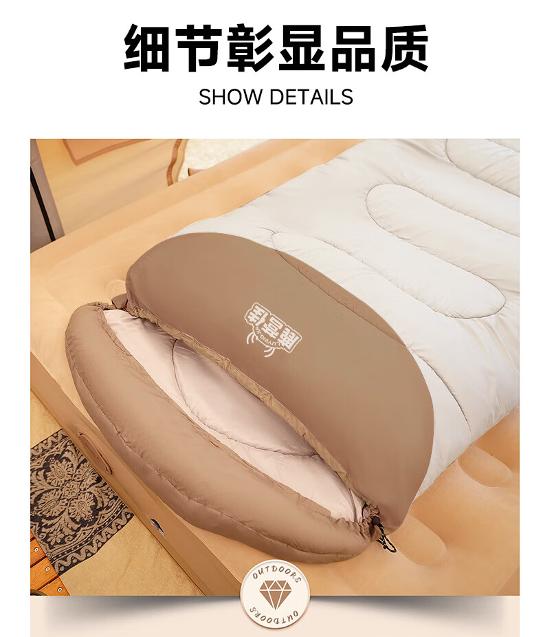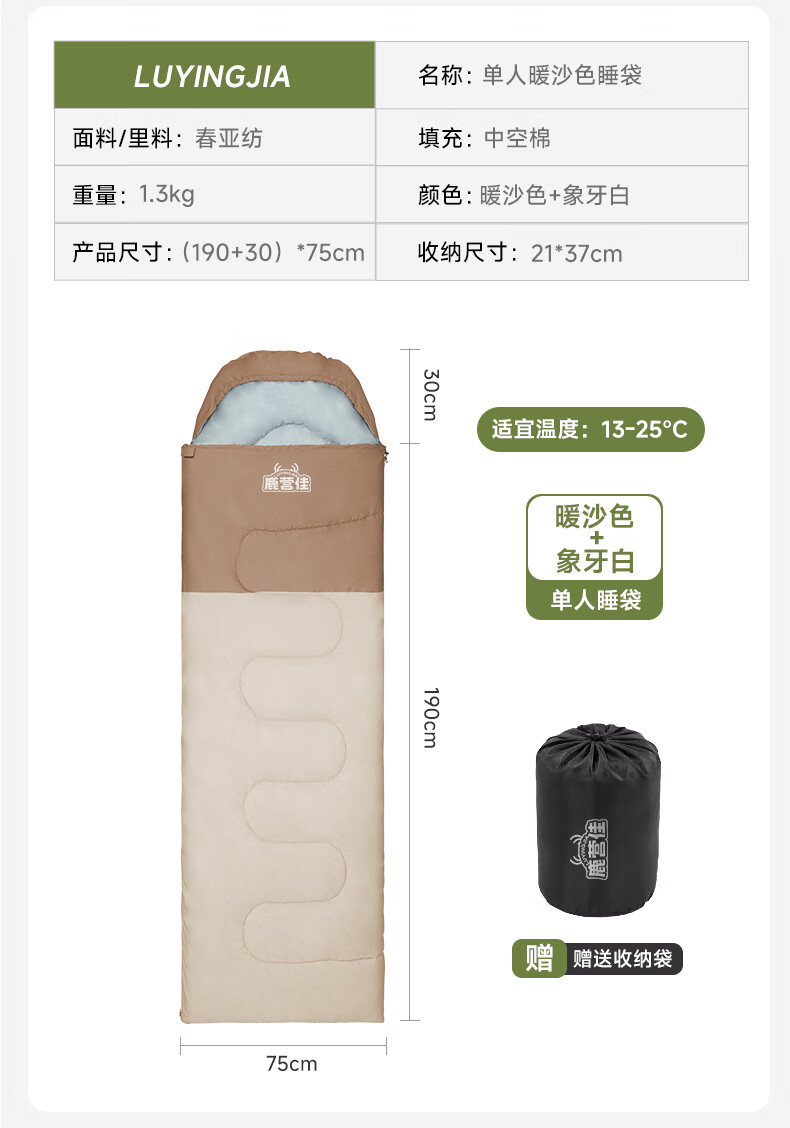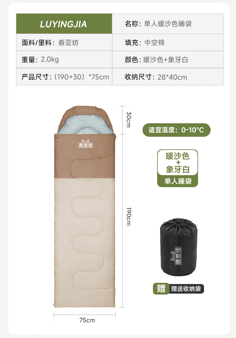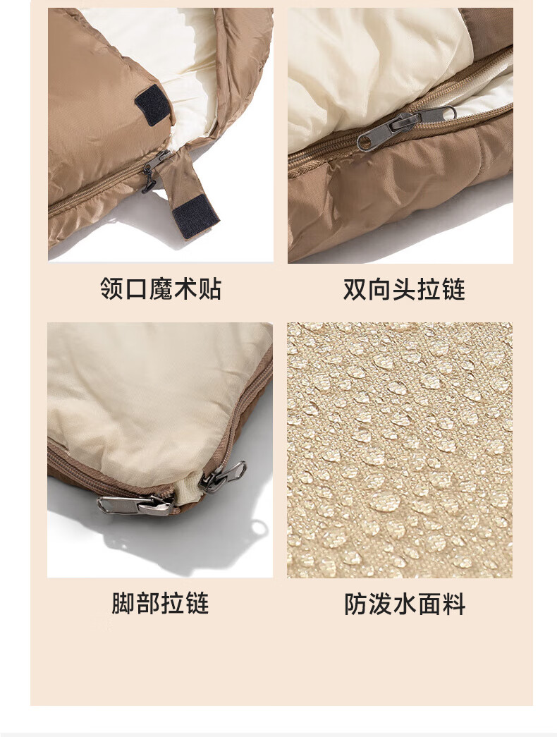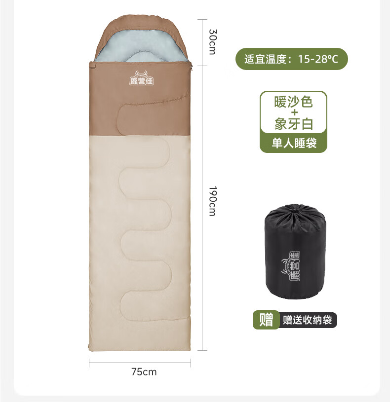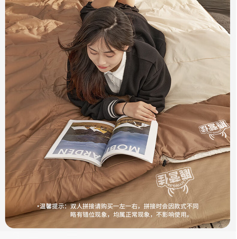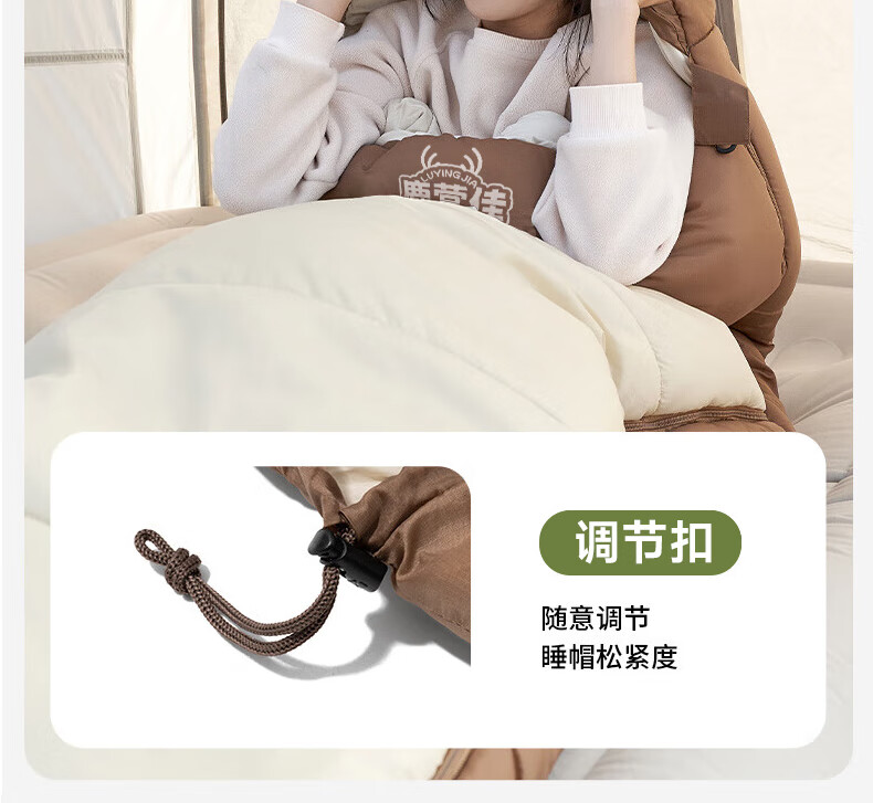 鹿营佳信封式睡袋户外成人加厚露营睡袋秋冬防寒可拼接双人四季通用 【1KG】右连帽拼接睡袋-棕白色
