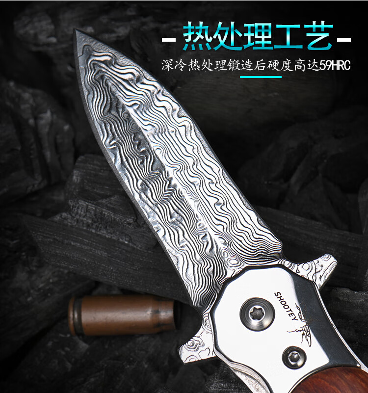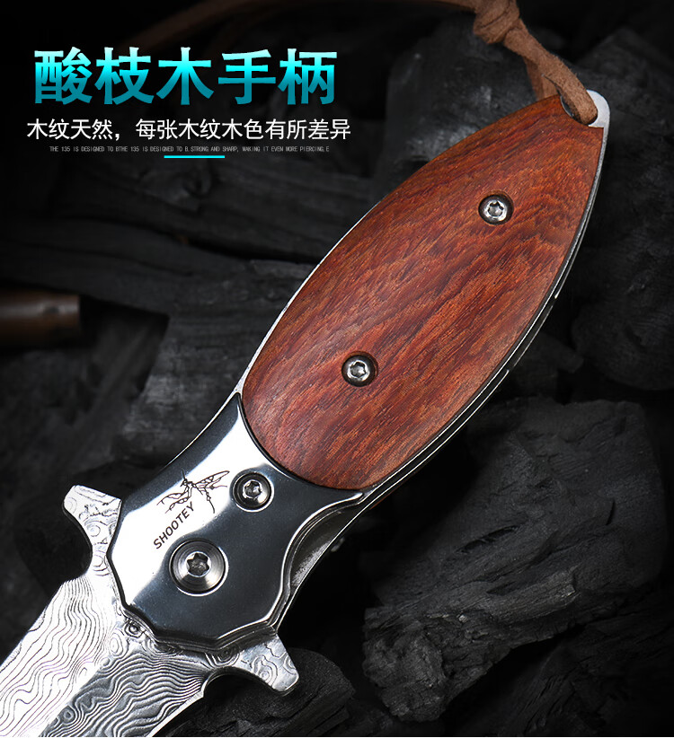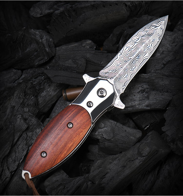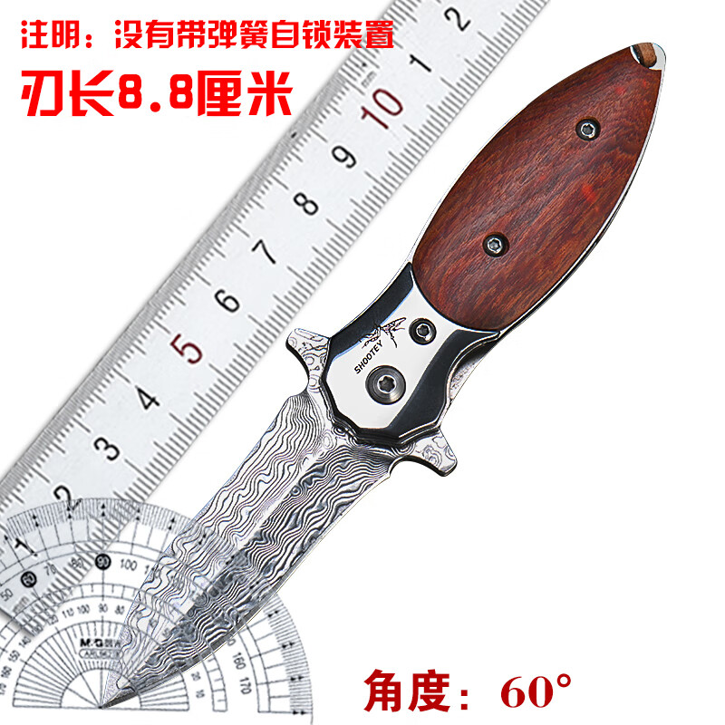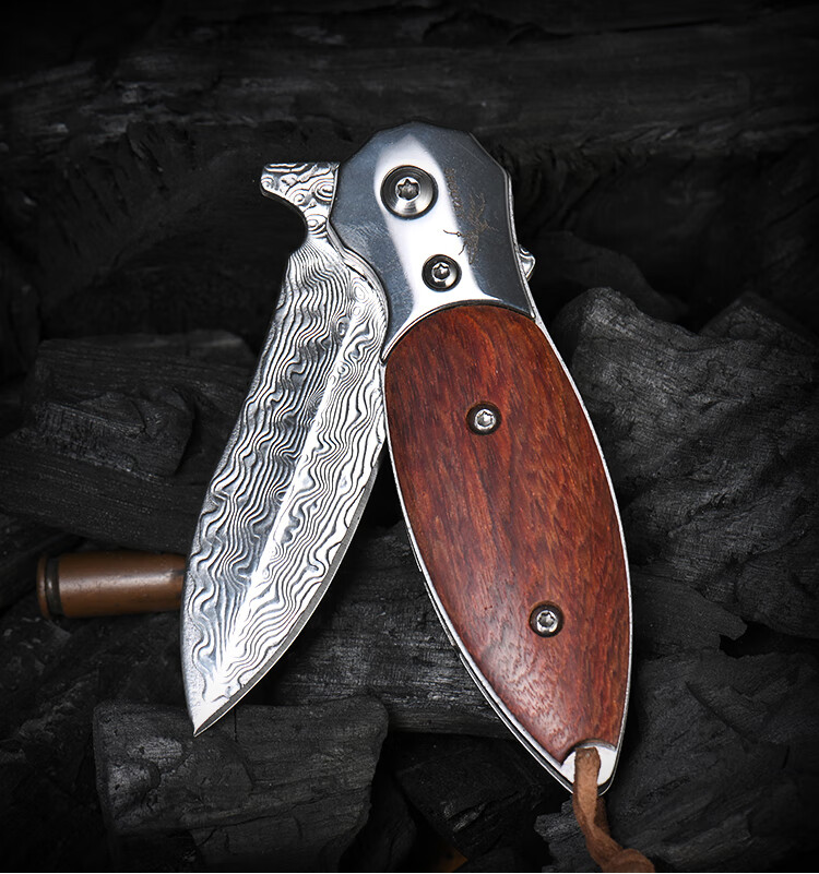 煌利户外刀具大马士革钢刀防身折刀高硬度锋利小刀子便携钥匙扣折叠刀 89大马士革钢款
