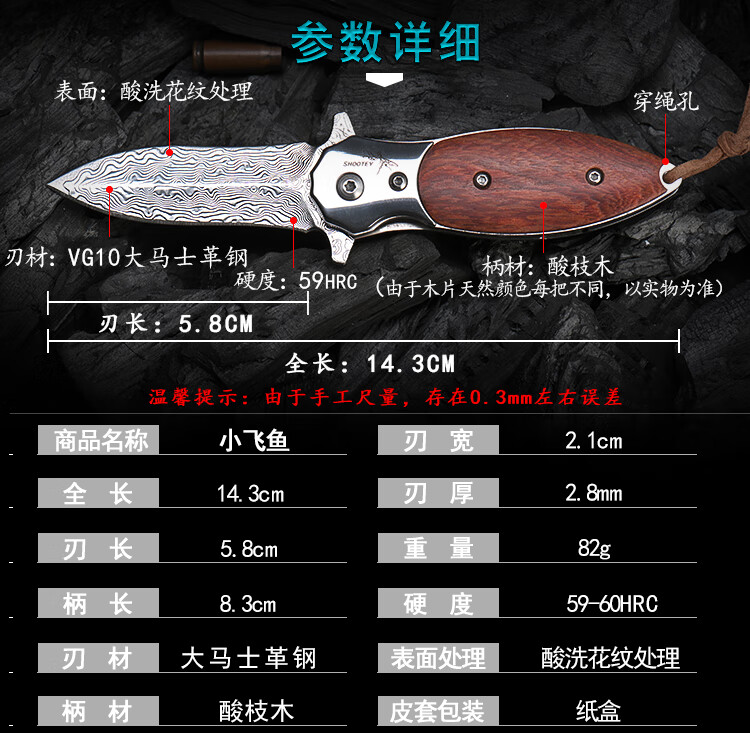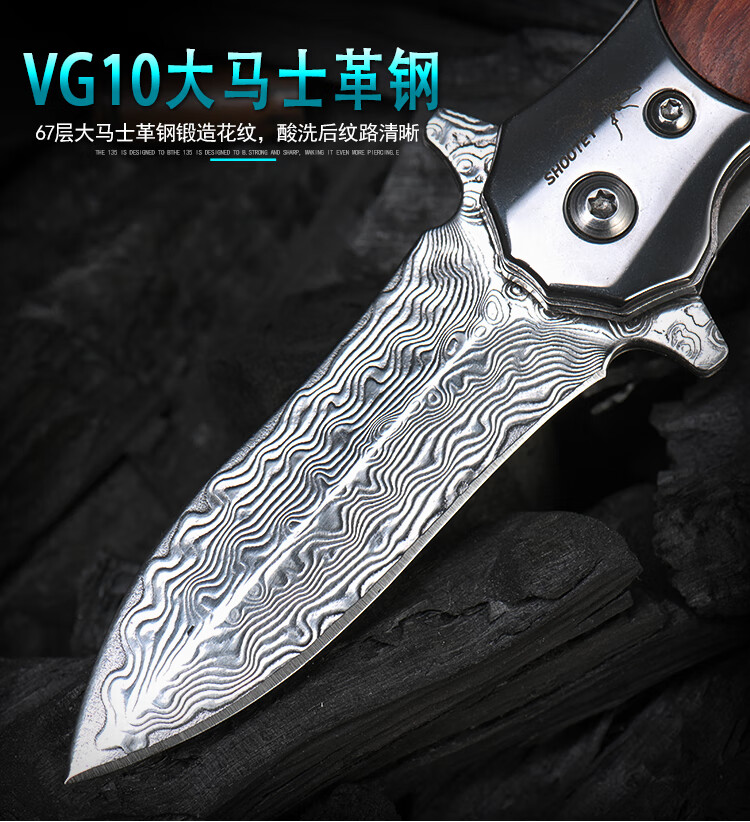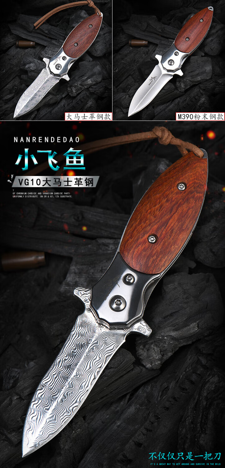 简约妮卡(jianyuenika)大马士革10钢小刀具刀子防身随身荒野野营刀具高硬