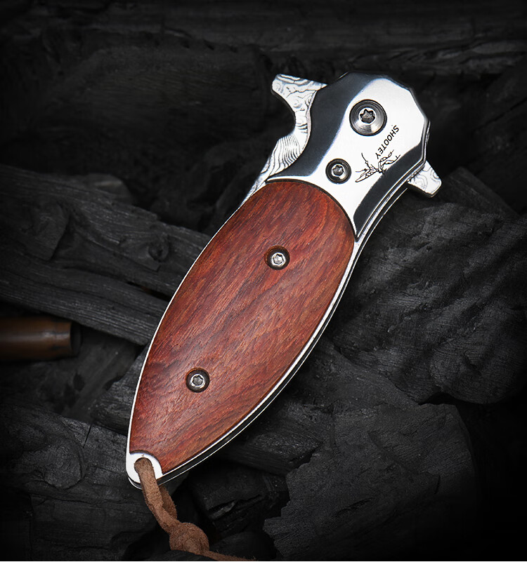 夜行者(Night stalker)露营锋利刀登山野外多功能刀具小刀黑檀木套刀具 D2钢圆头