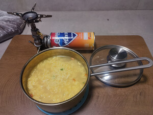 新到CAMPINGMOON柯曼火箭炉XD-2NE 【XD-2NE】卡炉转换器迫不及待上手试试,用家里的牛奶锅三分之二的水不到5分钟烧开了,煮个面吃吃。