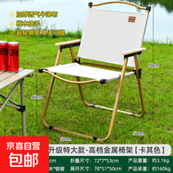 户外折叠椅克米特椅便携式桌椅休闲沙滩椅野餐露营椅子轻便钓鱼凳 特大号 卡其色【榉木扶手】