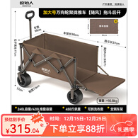 原始人户外露营折叠推车营地车手拉拖车野餐野营拖车遛娃便携买菜小拉车 420L 咖色【后开款】10cm越野轮