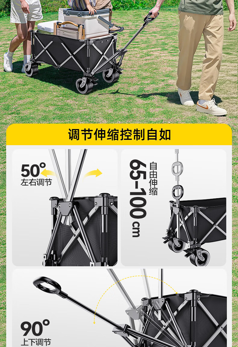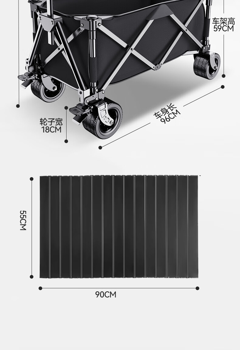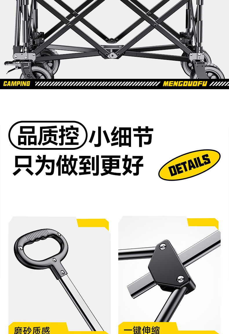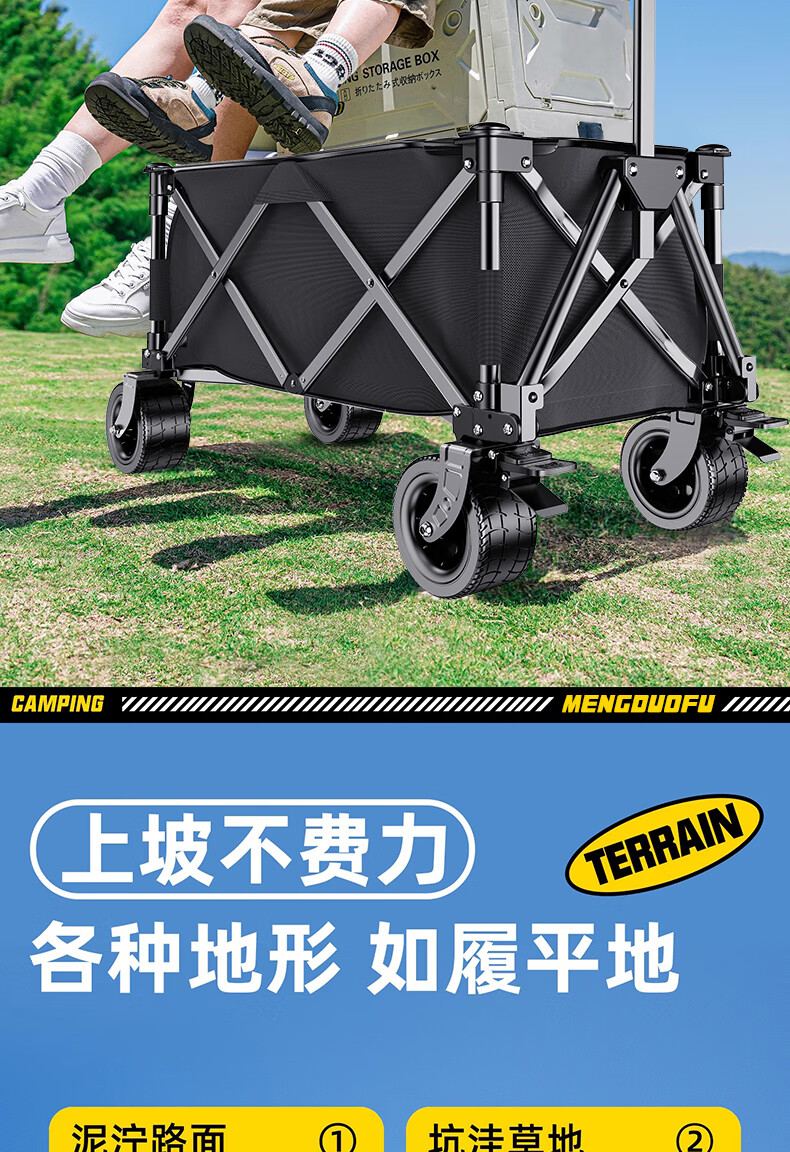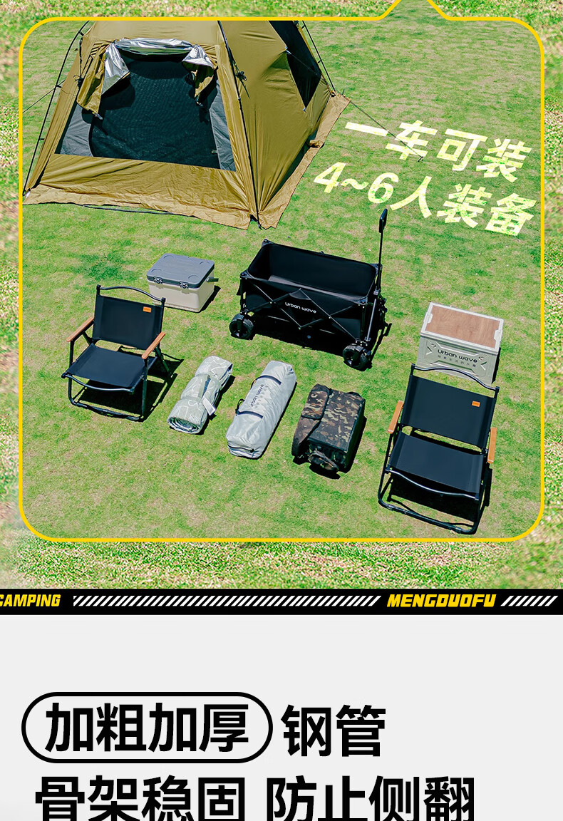 梦多福露营车聚拢款营地户外露营折叠小推车拉货摆摊溜娃 大号款【坦克轮】有刹车 黑色款