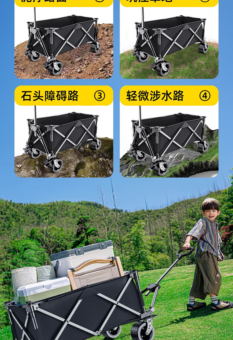 户外行李车非常方便,也很好用承载量很大,轮子抓地力也很好,外出露营是个必不可少的实用工具 很不错