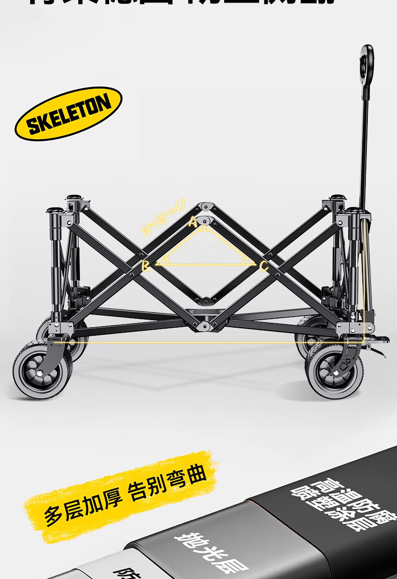 暴走怪兽户外露营车折叠小推车拖车野餐车大容量聚拢收纳摆摊出行装备 【迷你聚拢款】黑色150L【实心万向轮】