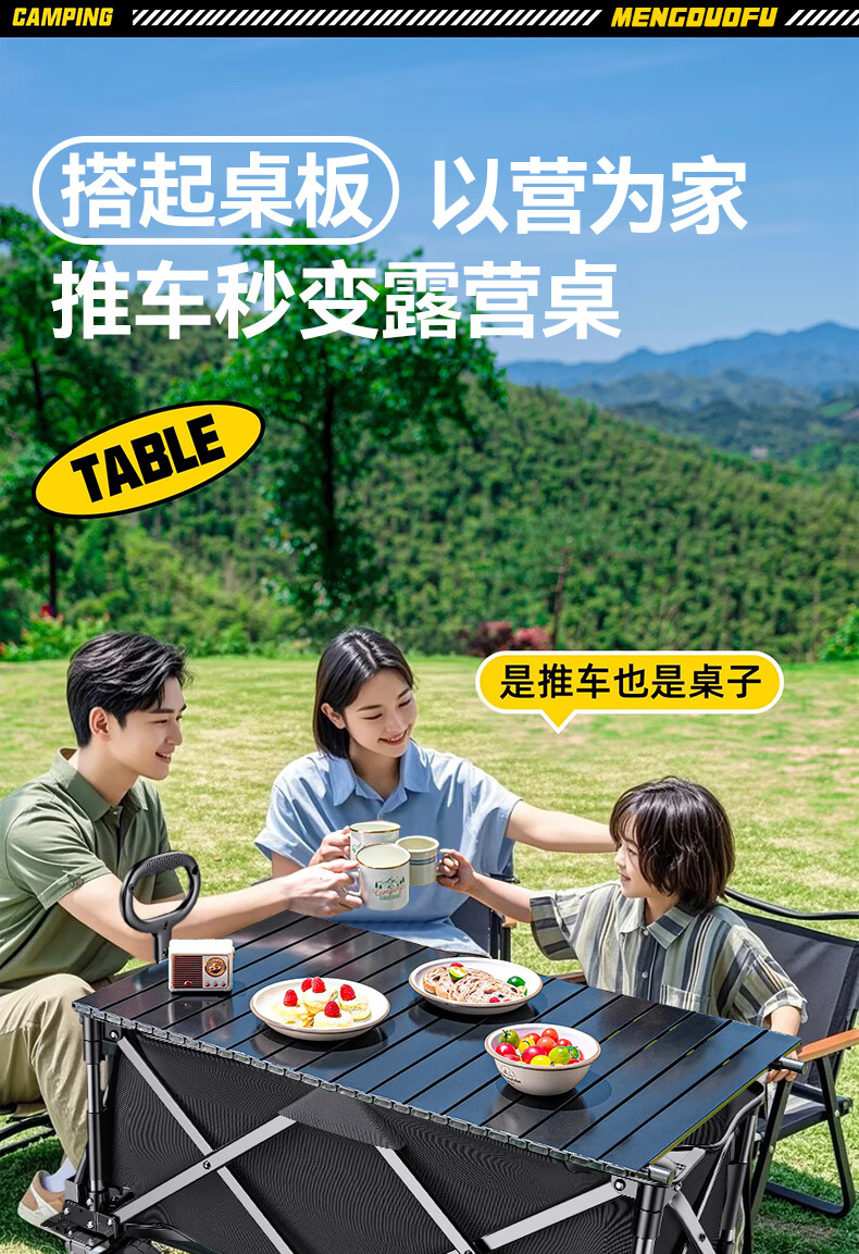 牧行露营车带桌板户外聚拢型折叠手推车儿童可躺野餐拉车S12 610L 绿色MAX+1.2米加长桌板