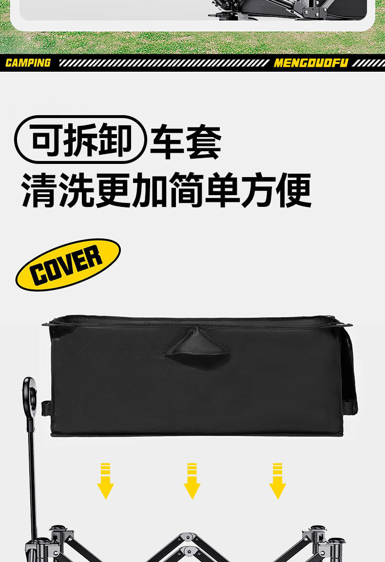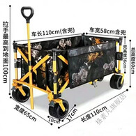 疆屿露营车野营户外折叠手推车野餐摆摊拖斗车儿童可躺超大聚拢营地车 黄白格400L聚拢标准拖斗3秒收纳