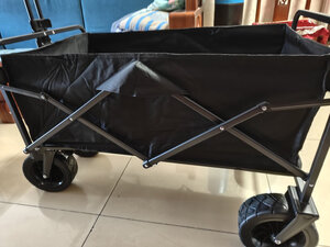 这是我收到过的最精美的包装了,不过好在里面的东西不怕这样折腾。 试了下强度,感觉把重量平铺到底部应该是完全能承重的 轮子很宽,在沙地泥地里可以放心用了 折叠不占地,好收纳和运输 轮子还带刹车,在斜坡也可以停,很方便 价格还实惠,总体感觉还不错 还没长时间使用,等用一段时间,如果有问题或心得,再回来追评