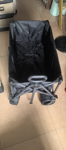 货收到了,质量很好,很结实,看着特别的耐用,轮子万向轮儿很大 特别适合夏天外出带小孩儿游玩儿,放里面睡觉非常合适。而且能放好多物品很结实,很耐用。特别值得大家去购买。它这个面料是那种无纺布的买的黑色的,耐脏的颜色。