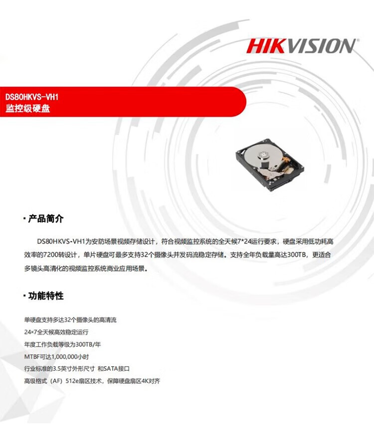 海康威视原装 海康威视8T DS80HKVS-VH1 8TB企业级监控台式机 DS80HVS-VH1 8TB 监控硬 8TB
