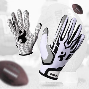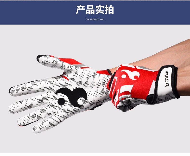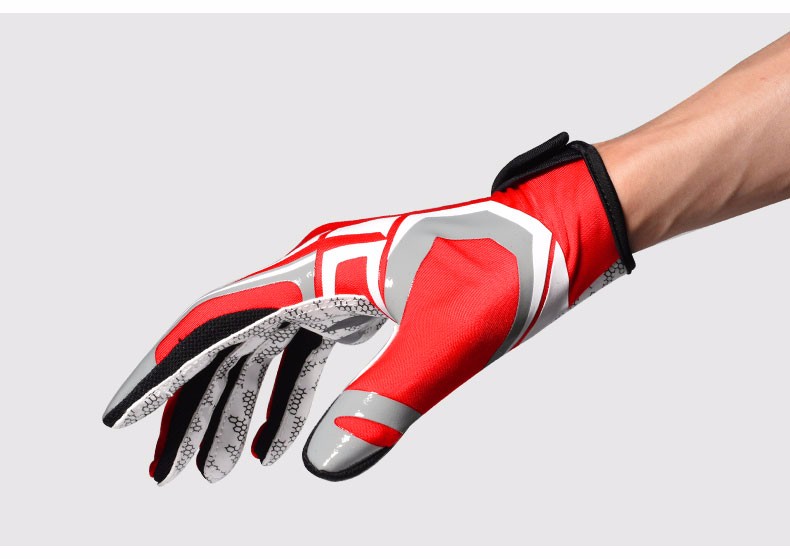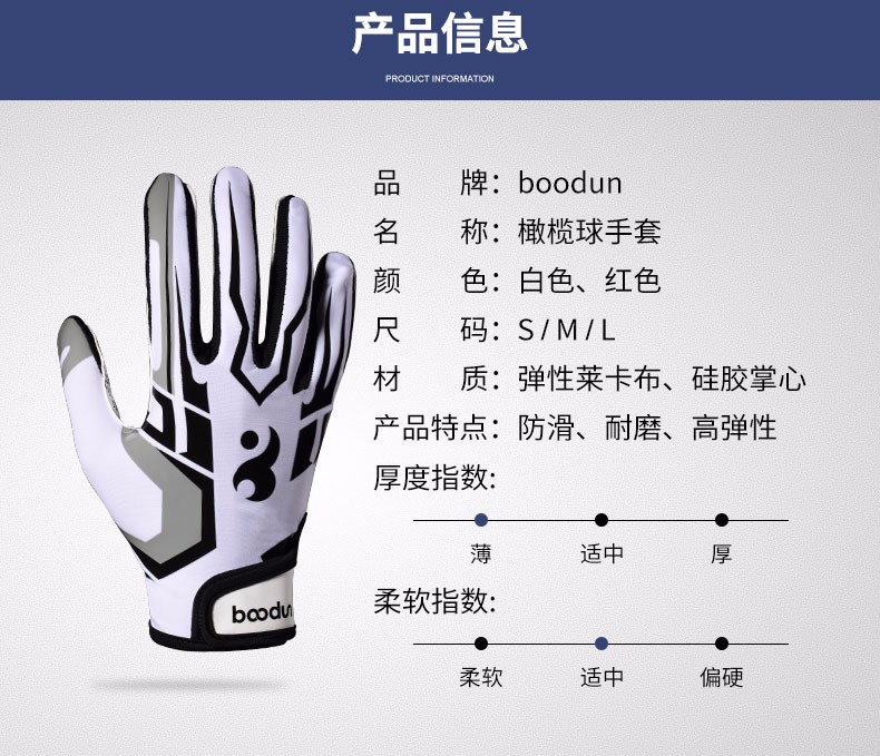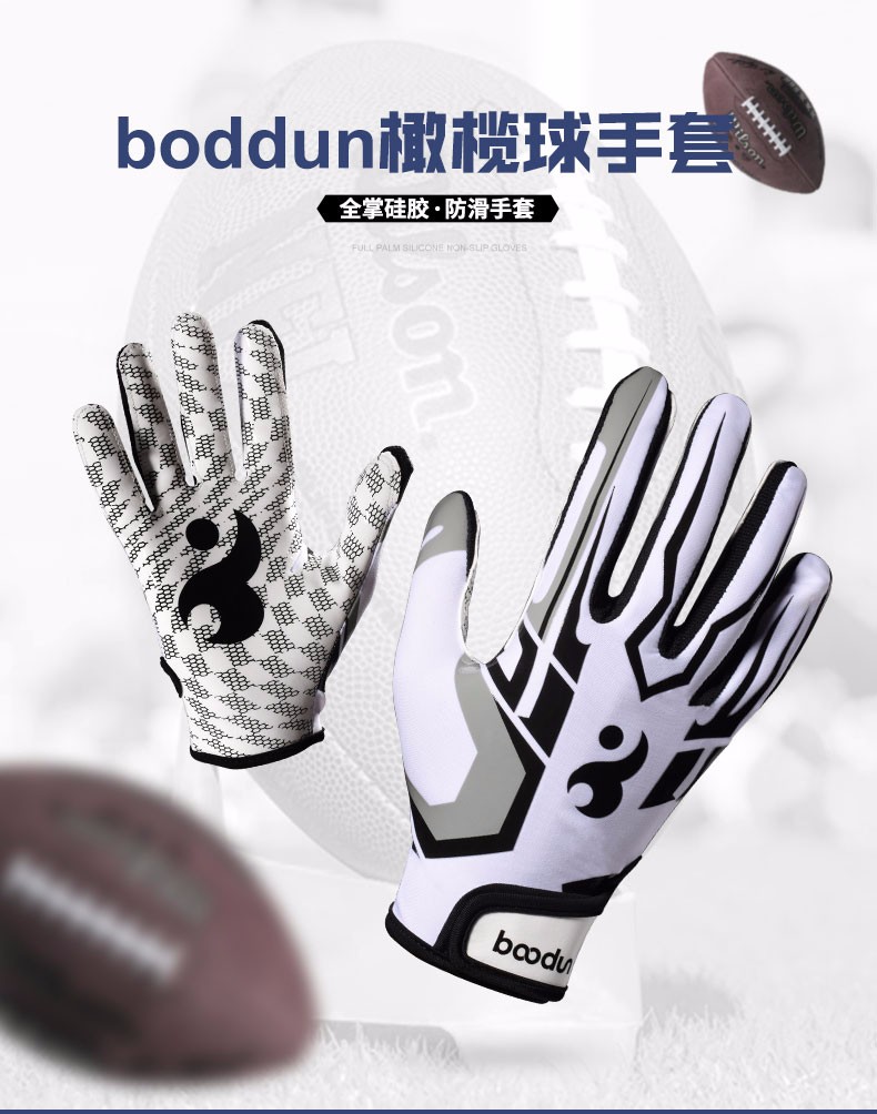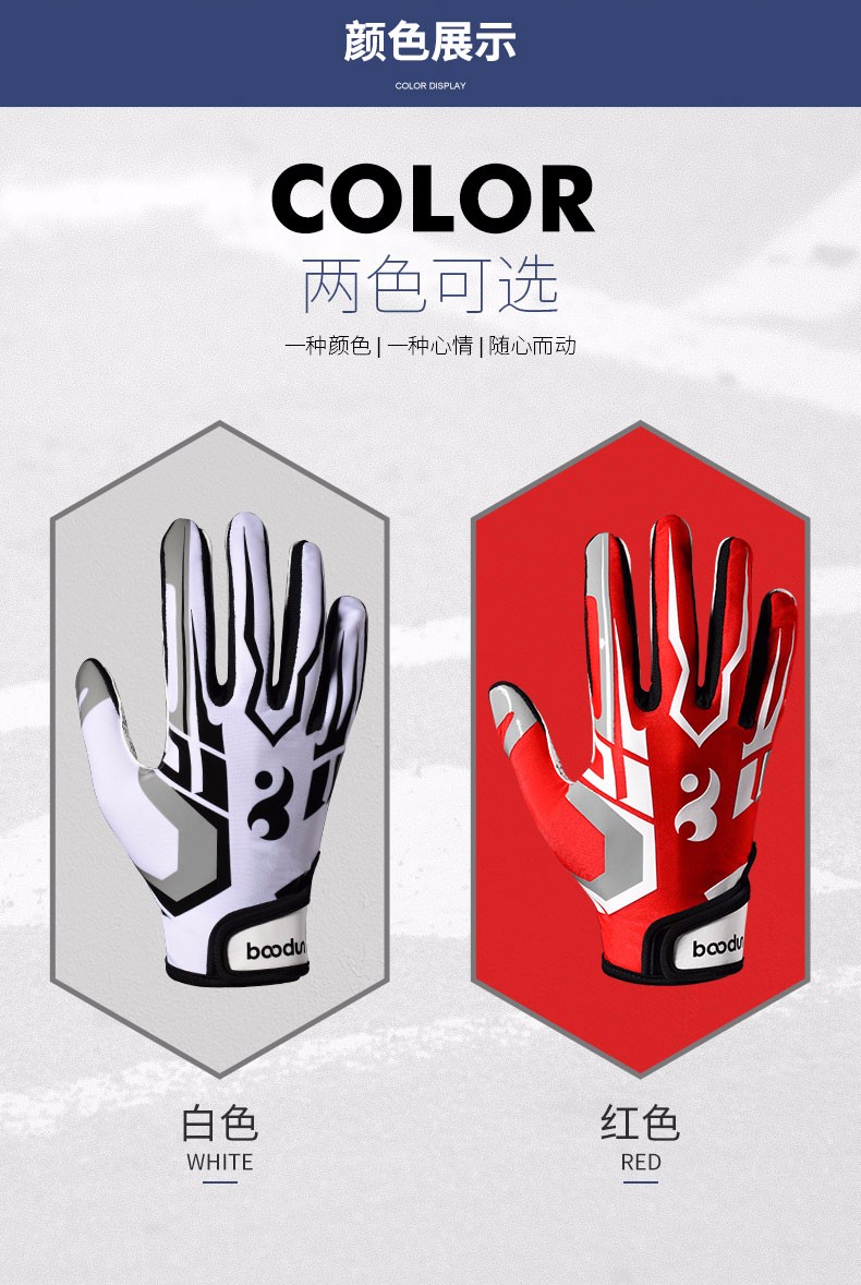 boodun 橄榄球手套美式训练运动防护全掌扑球耐磨硅胶防滑飞盘全指手套 红色【全掌防滑硅胶】透气贴合 M(推荐掌围 19-21cm)