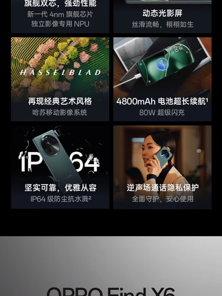 OPPOFind X6 超光影三主摄 5G全网通 80W闪充 天玑9200芯片 哈苏影像 飞泉绿 16GB+512GB