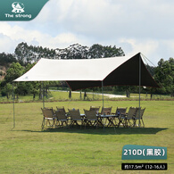 THE STRONG驿站四杆黑胶天幕户外露营防暴雨防晒遮阳装备 米白格子210D/遮阳约17.5平 防水20000mm